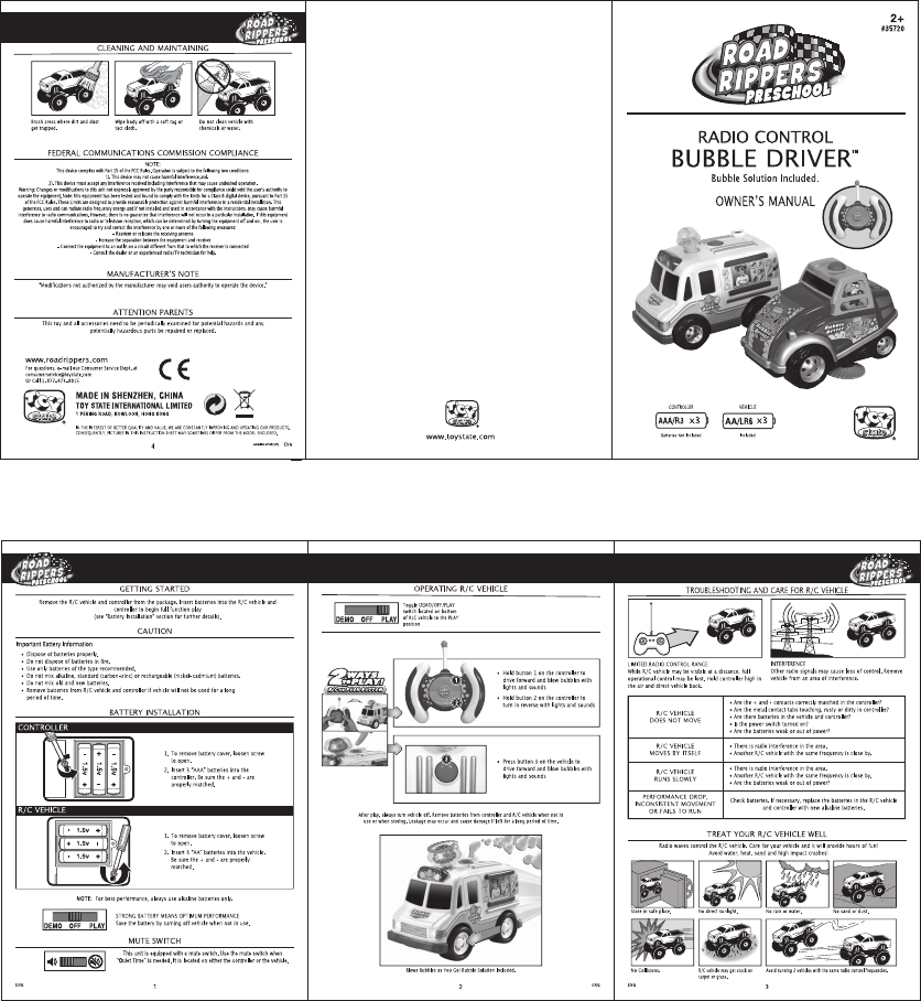 Toy State 35720F27 Bubble DriverTM - Ice Cream Truck User Manual 35720 A08 ISN 219B UP