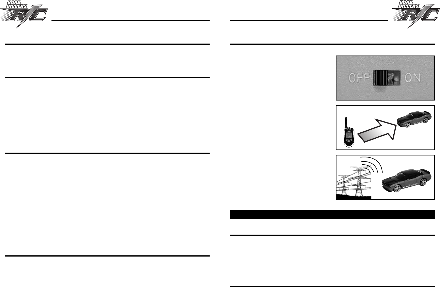 • Remove batteries from Road Rippers R/C Vehicle and Controller if vehicle will not be used for a