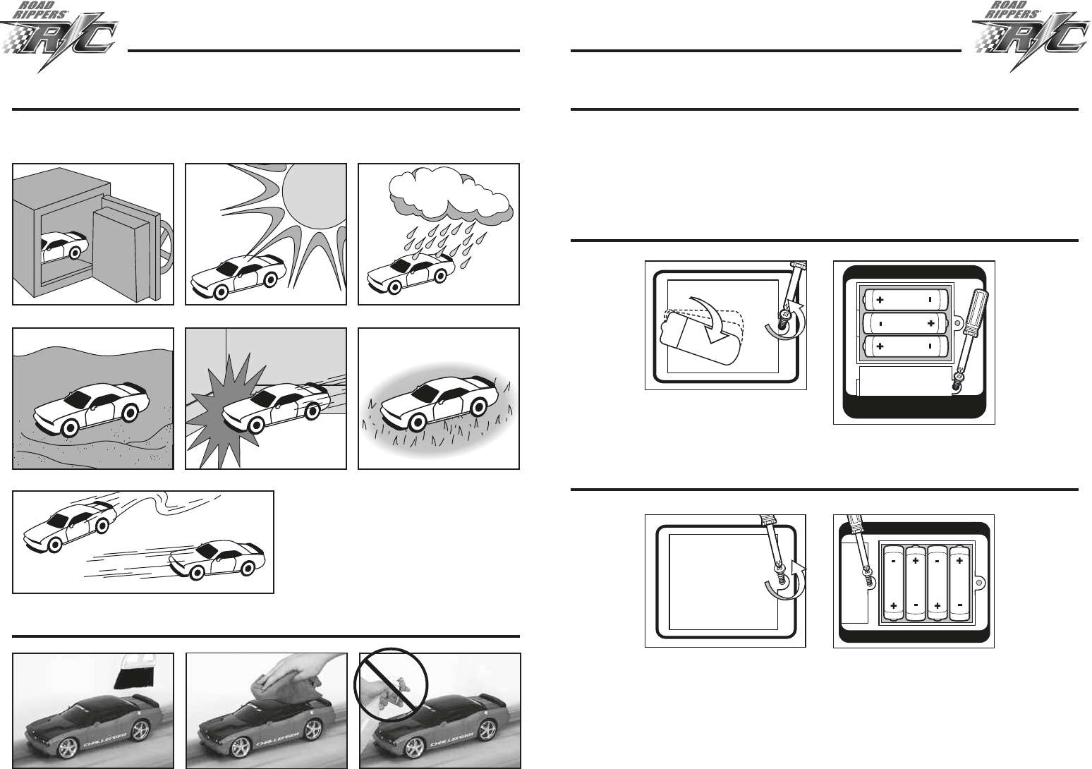 • Remove batteries from Road Rippers R/C Vehicle and Controller if vehicle will not be used for a