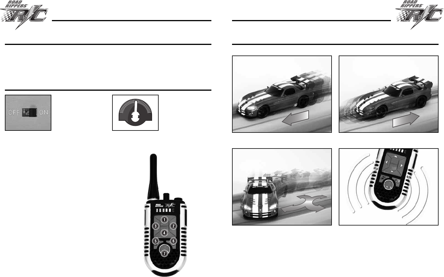 • Install batteries in Road Rippers R/C vehicle and controller.