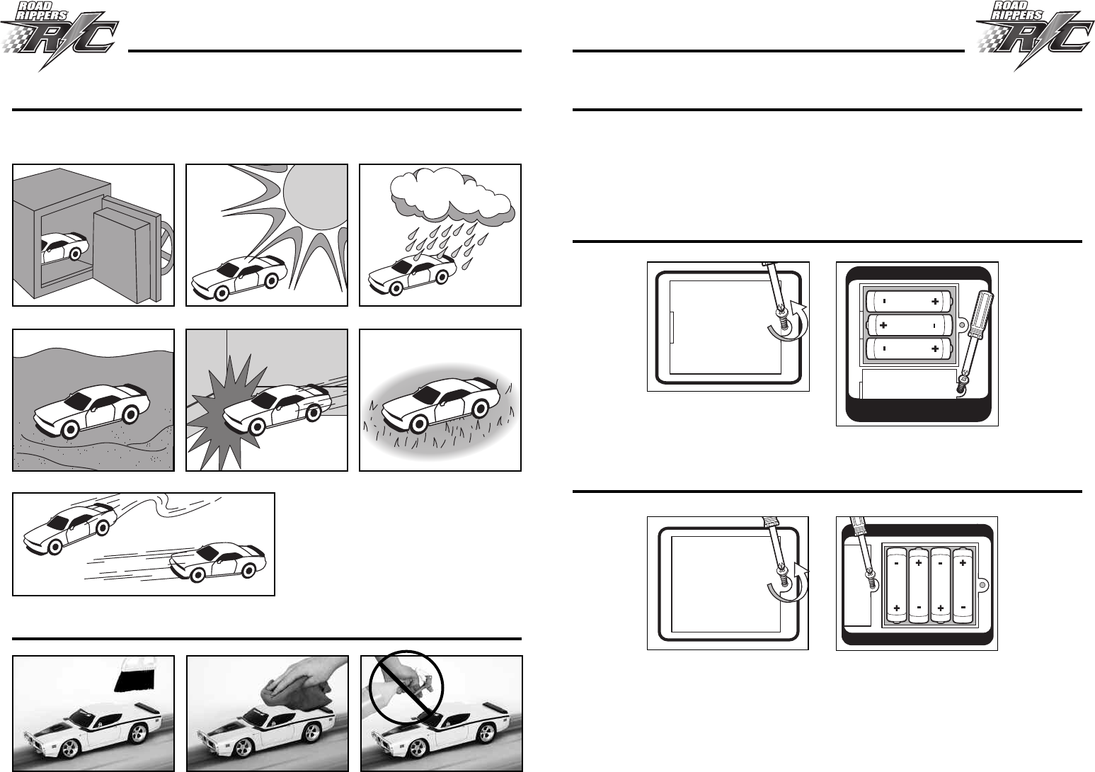 • Remove batteries from Road Rippers R/C Vehicle and Controller if vehicle will not be used for a
