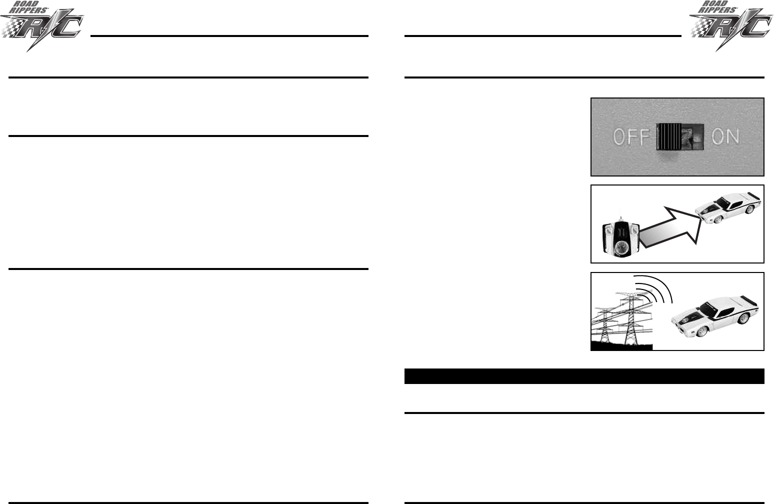 • Remove batteries from Road Rippers R/C Vehicle and Controller if vehicle will not be used for a