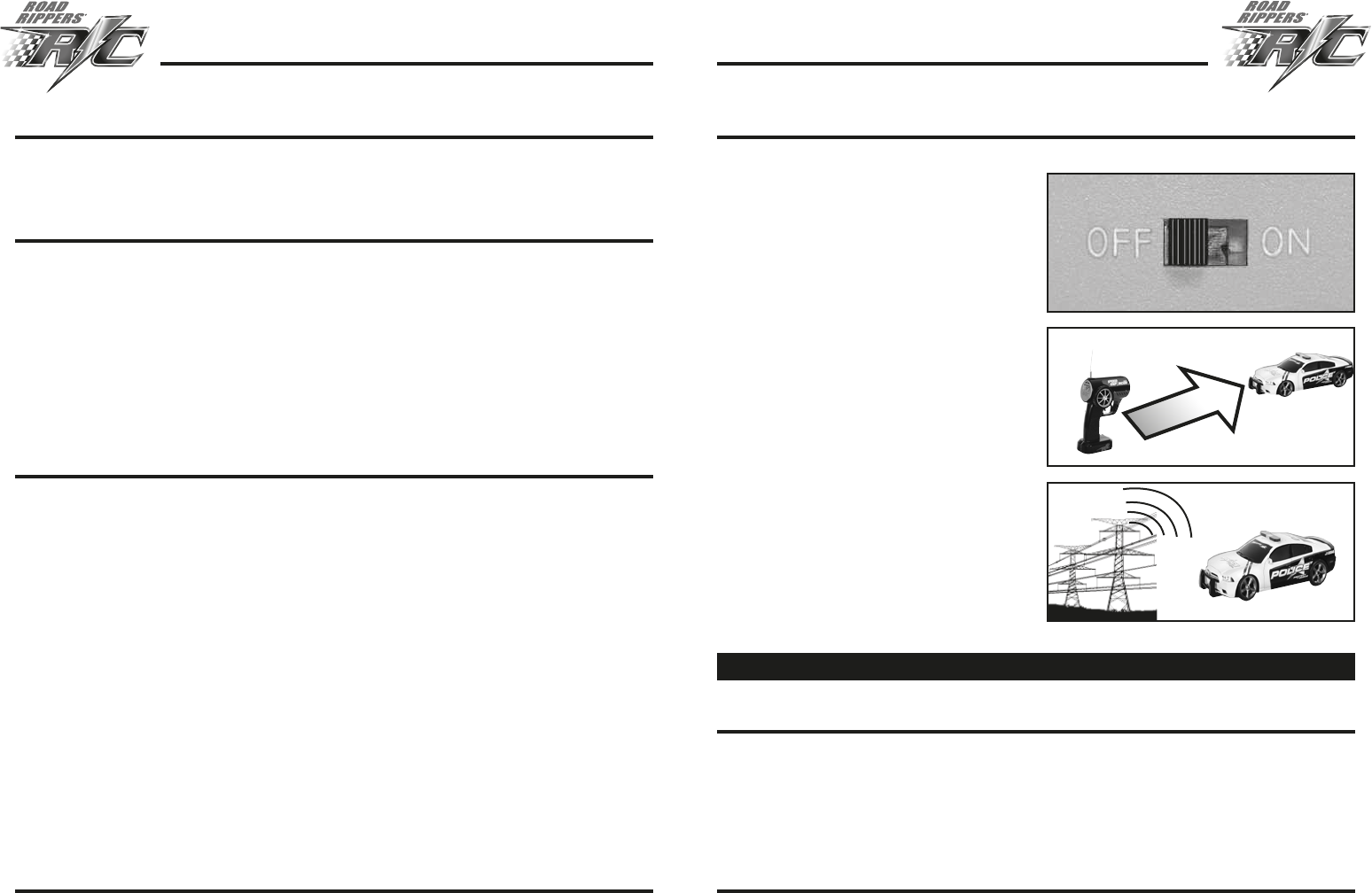 •Remove batteries from Road Rippers R/C Vehicle and Controller if vehicle will not be used for a