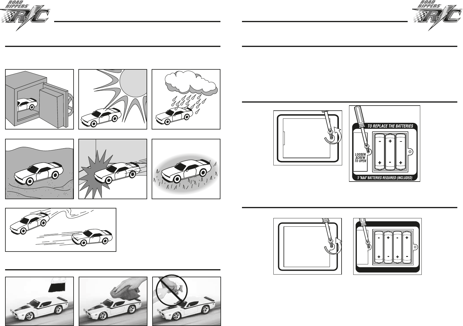 •Remove batteries from Road Rippers R/C Vehicle and Controller if vehicle will not be used for a