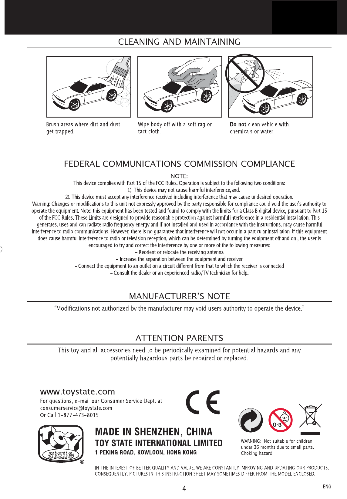 Toy State 37100F27 Blaze CrazeTM R/C – 3 Asstd User Manual 38721 CAT Instr 090204