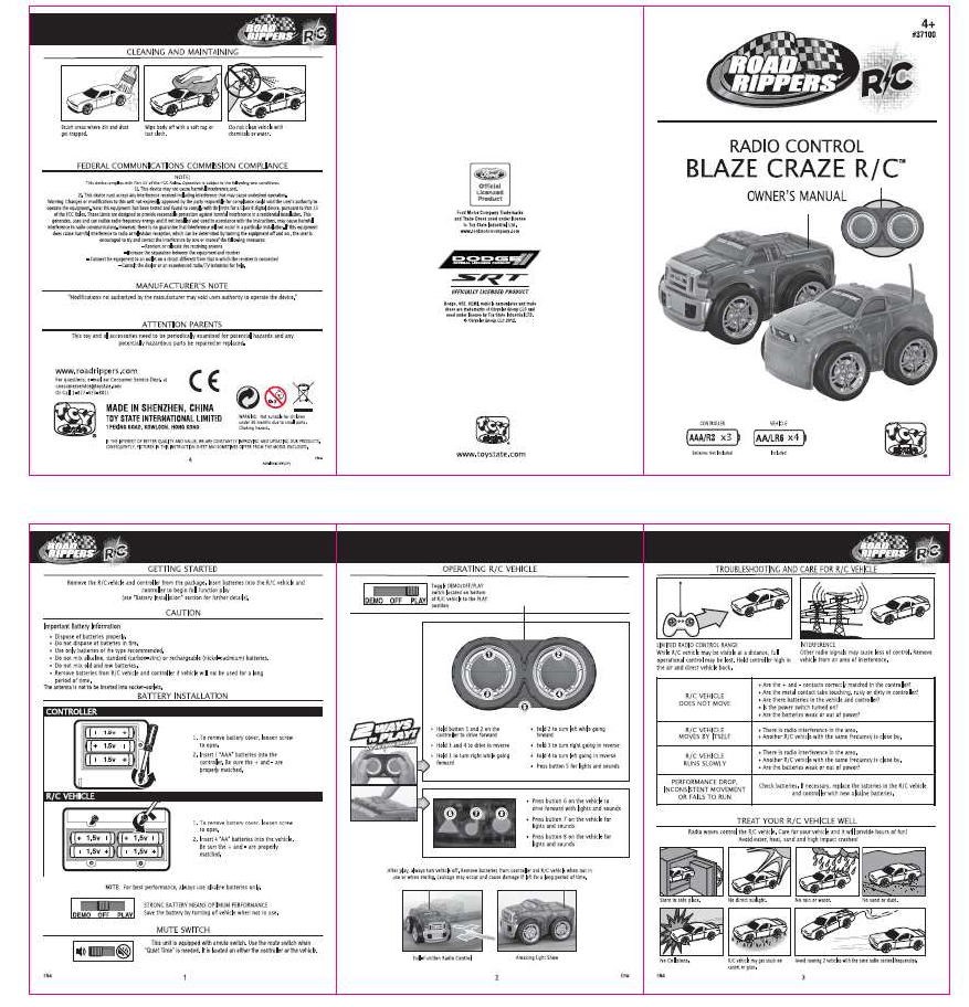 Toy State 37100T49 Blaze CrazeTM R/C - F250 User Manual 3
