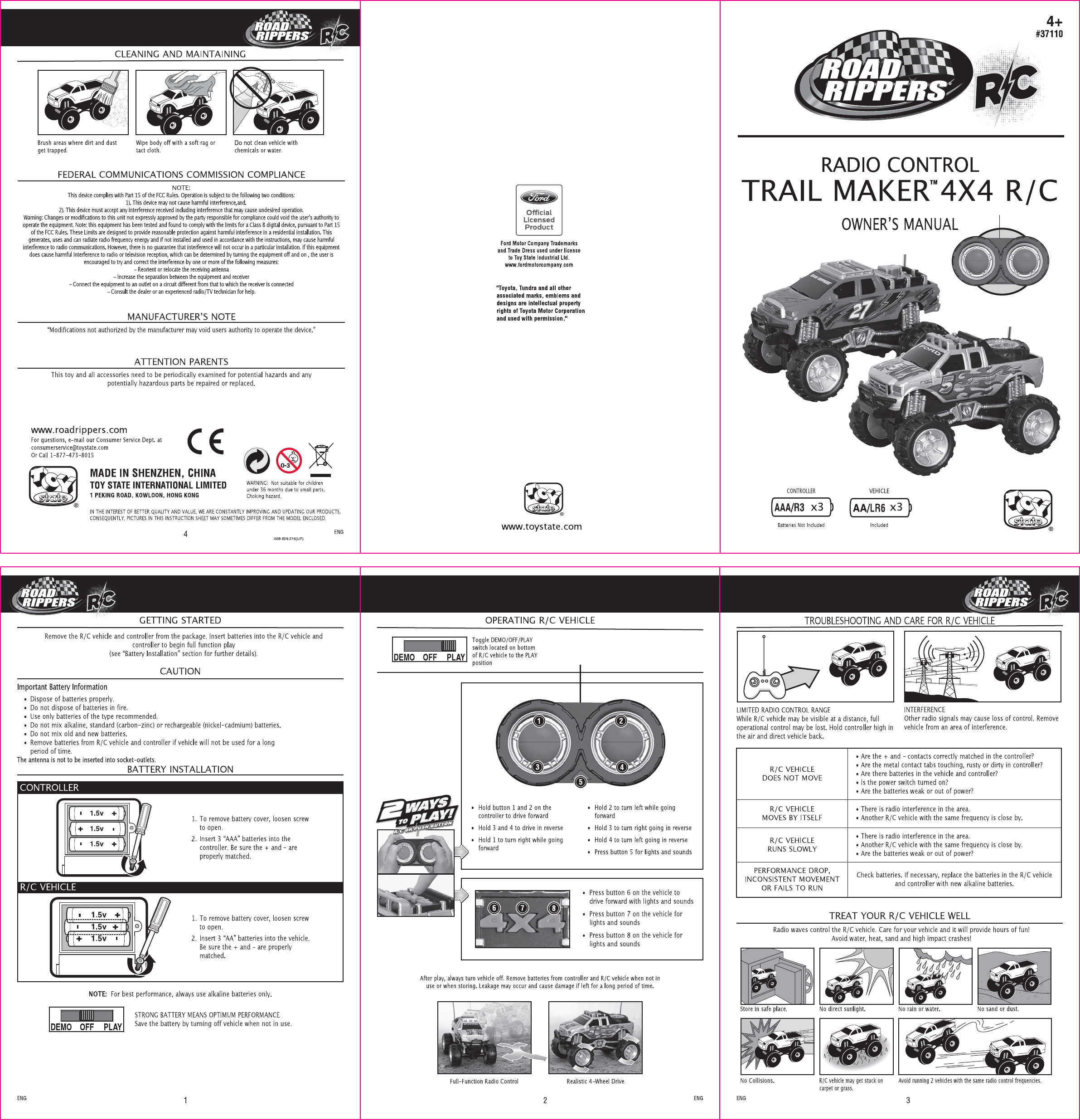Toy State 37110F27 Trail MakerTM 4X4 R/C - 2 Asstd User Manual 37110 A08 ISN 216B UP