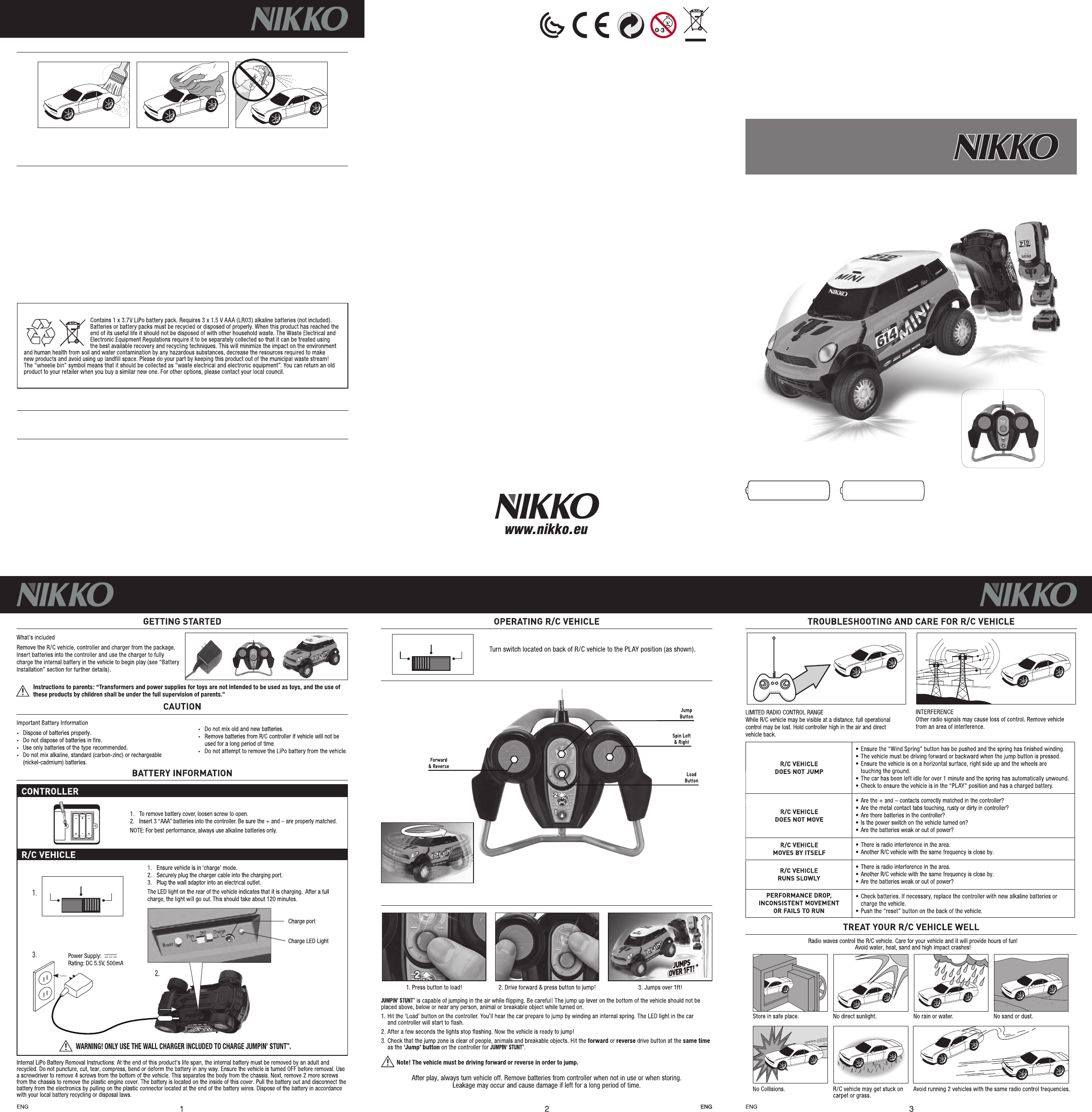 Toy State 37140F27 Jump N Stunt Mini RC User Manual 37140 Nikko JS 061814