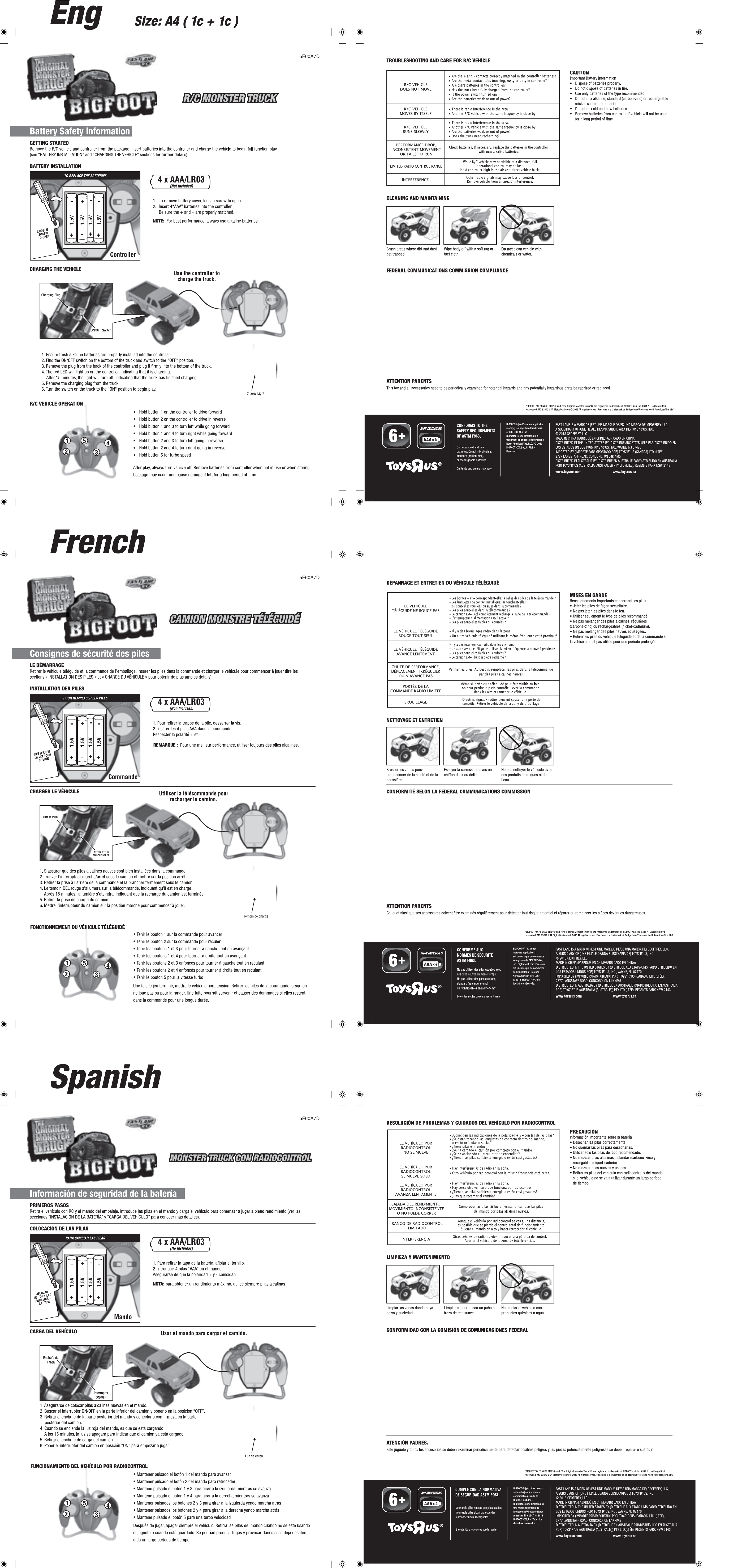 Toy State 5F60AF27 FL Monster Trux R/C & Controller User Manual 13G0018 A08 ISN 243 UP OL 052713