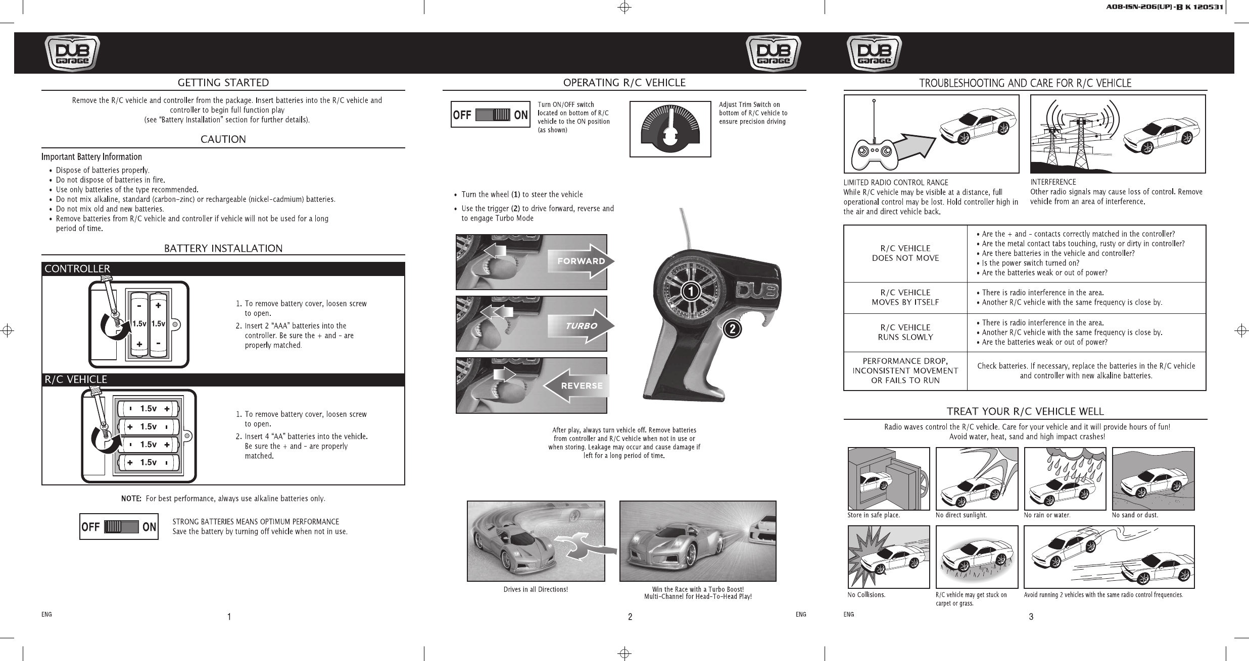 Toy State 60320F27 Turbo FreakzTM R/C - Nissan 370Z User Manual A08 ISN 206