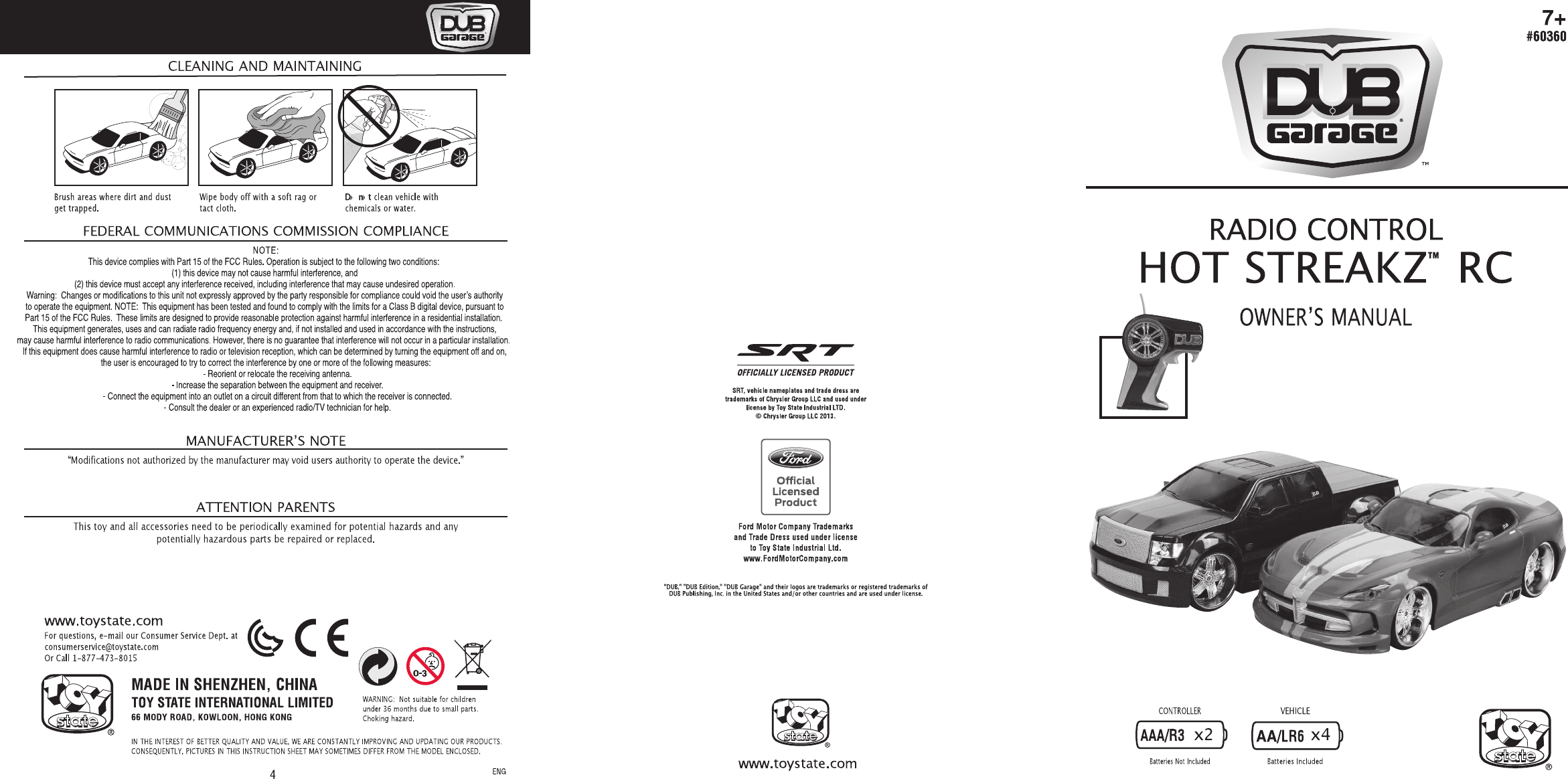 Toy State 60360F27 Hot StreakzTM R/C - Dodge Viper User Manual