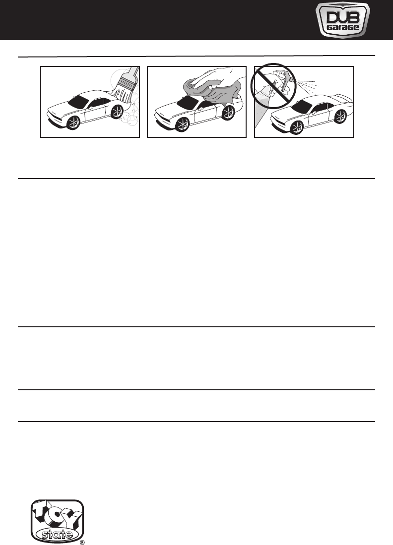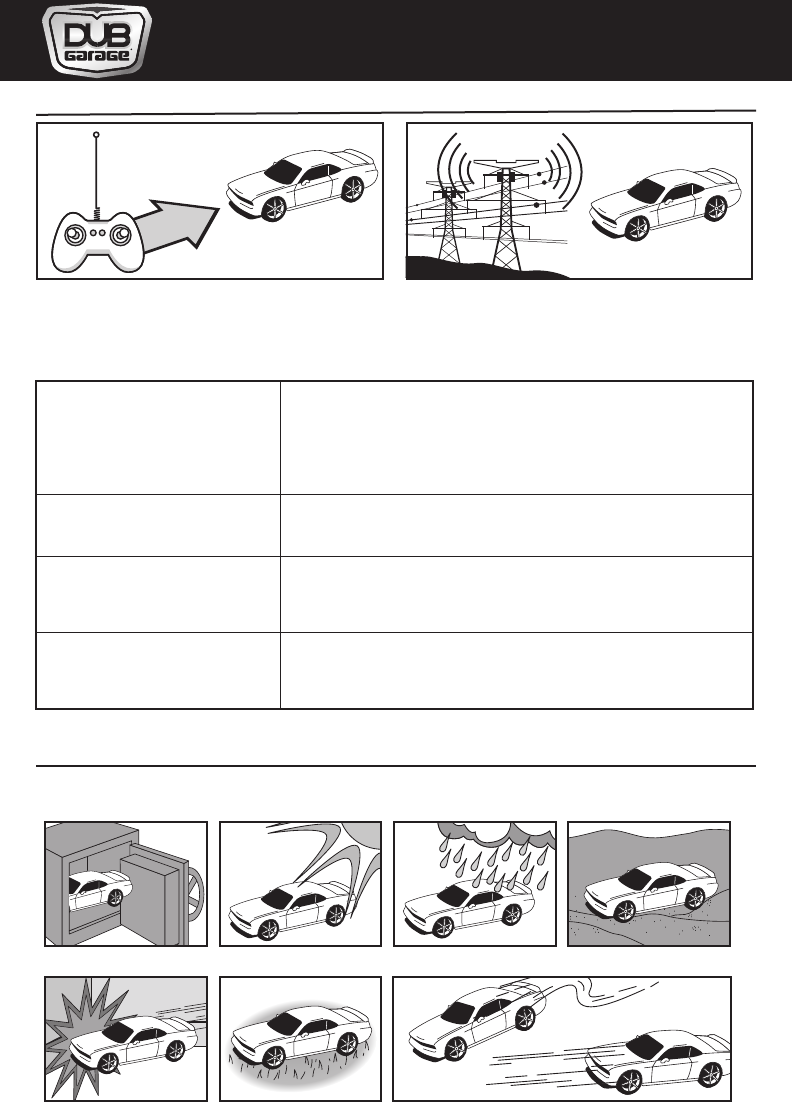 • Remove batteries from R/C vehicle and controller if vehicle will not be used for a long