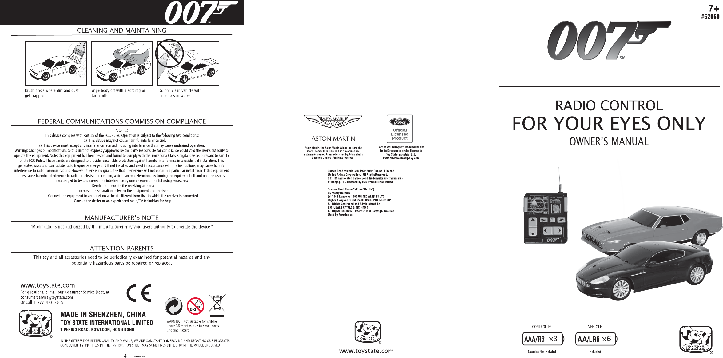 Toy State 62060F27 For Your Eyes Only R/C - Aston Martin DBS V12 (Quantum of Solace) User Manual