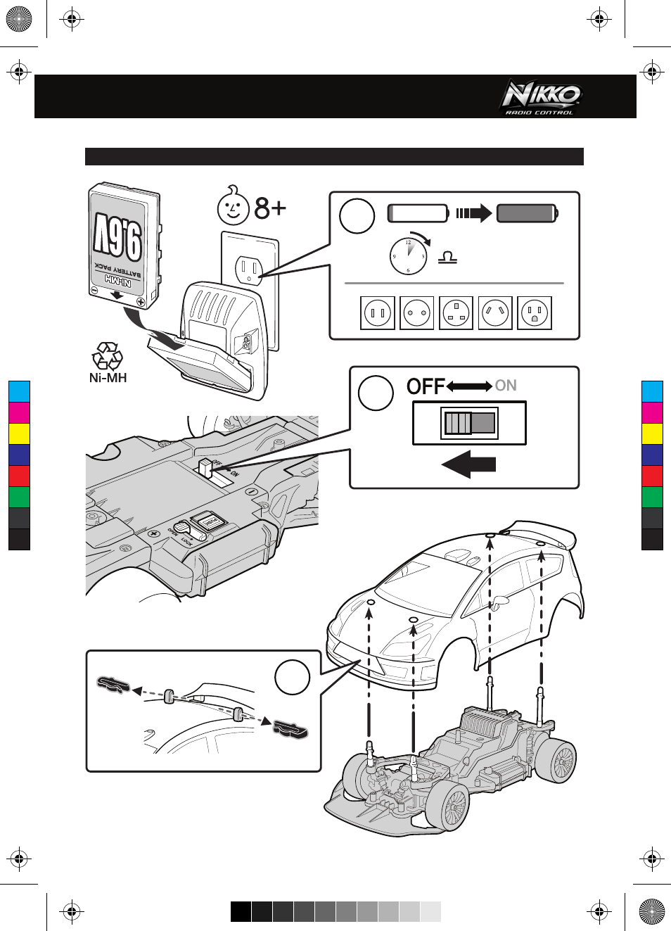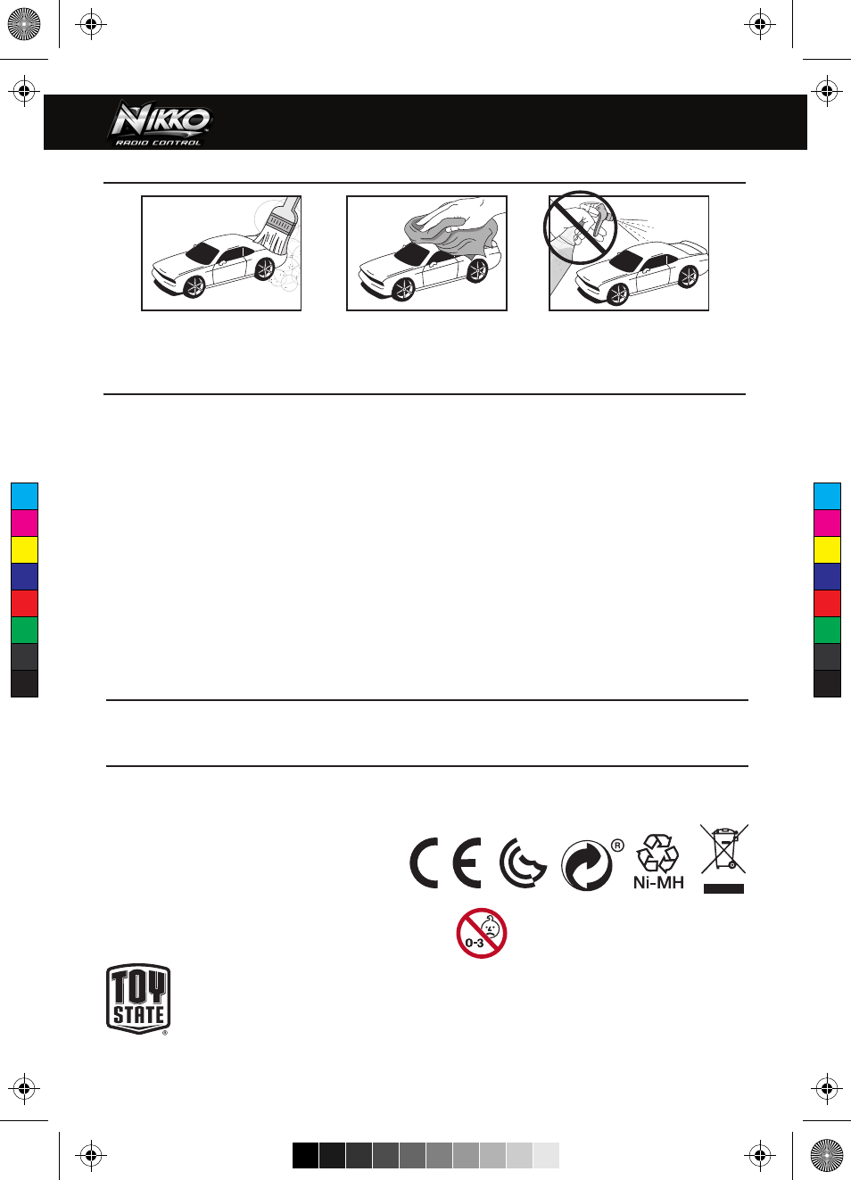 • Vehicle will not run without a 9.6V rechargeable NiMH battery pack and matching charger, commonly available