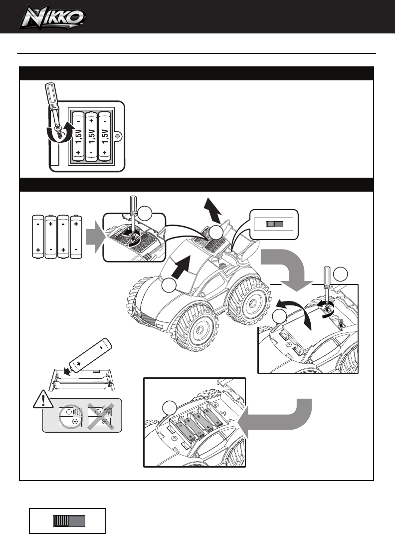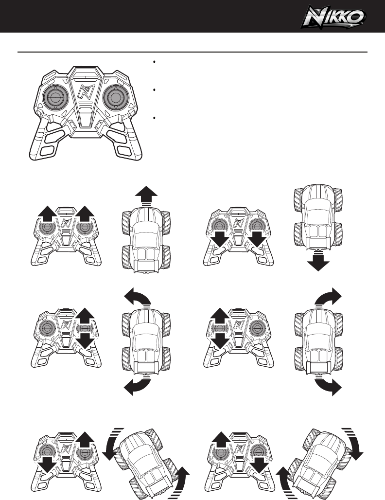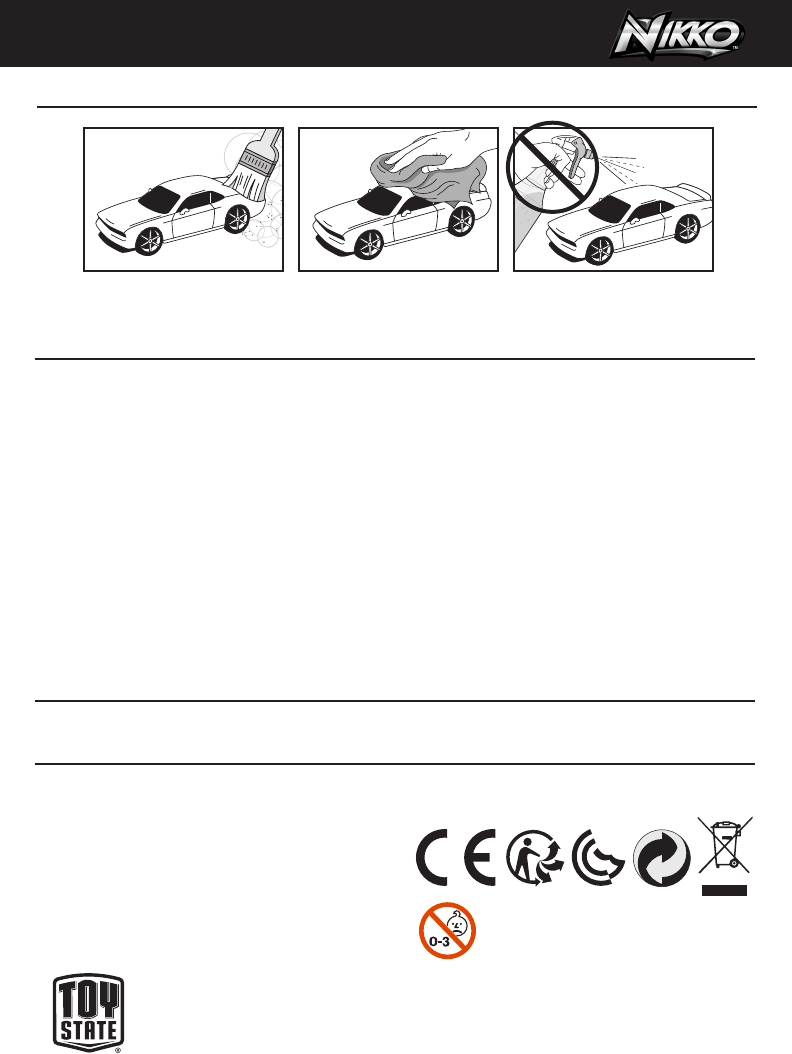 • Remove batteries from R/C vehicle and controller if vehicle will not be used for a long period of time.