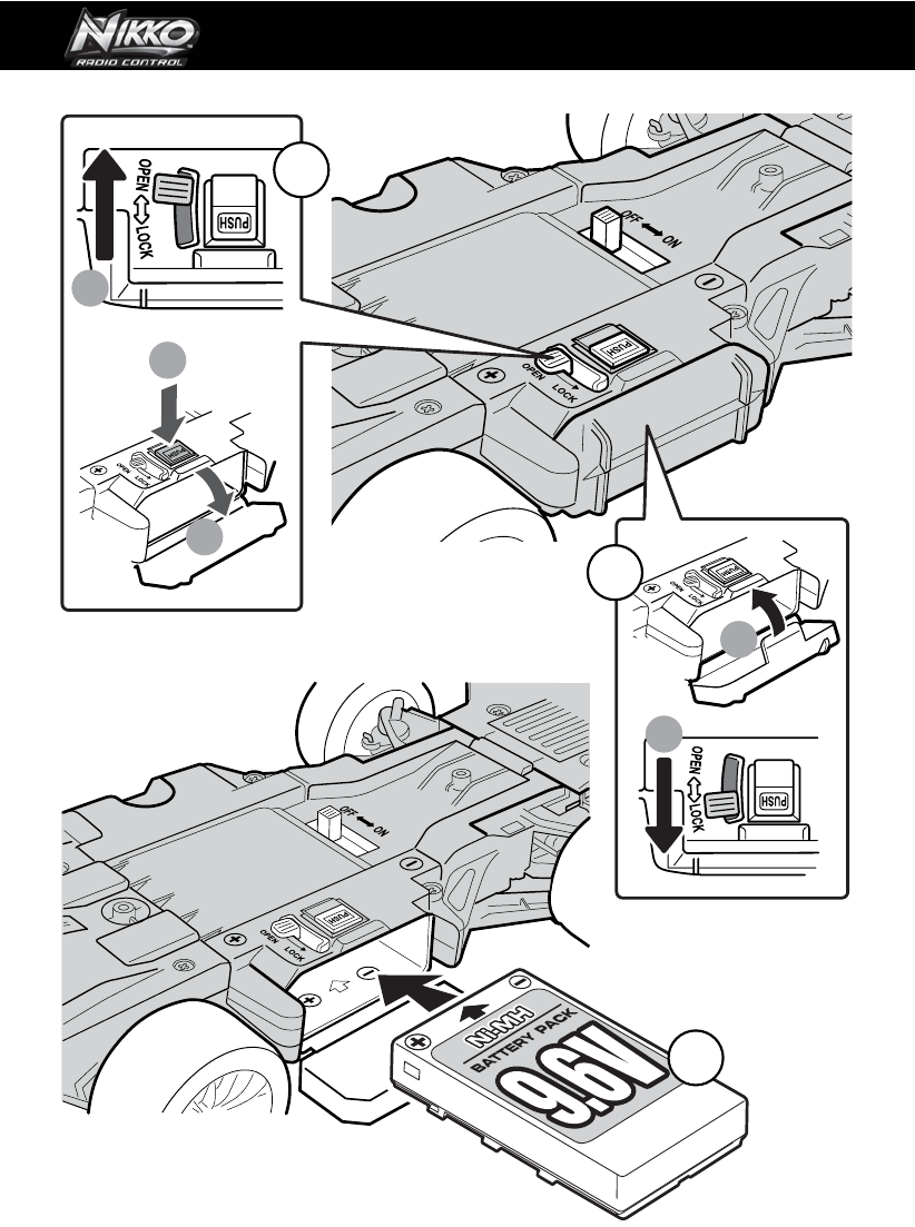 машинке и вставьте в пульт управления новые щелочные батарейки.