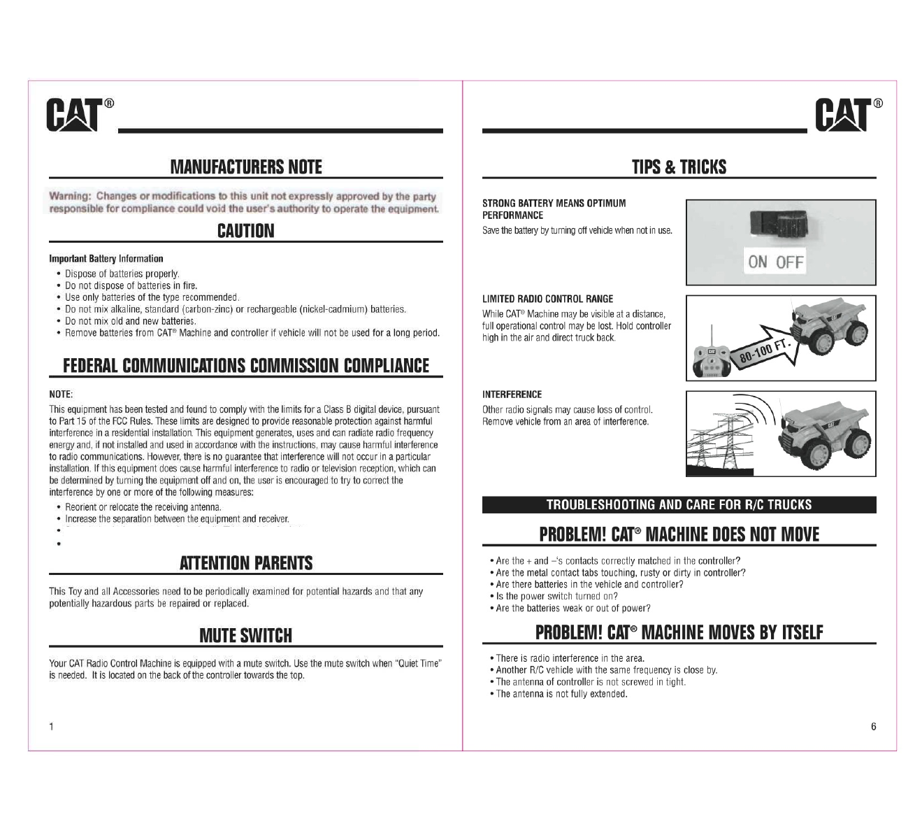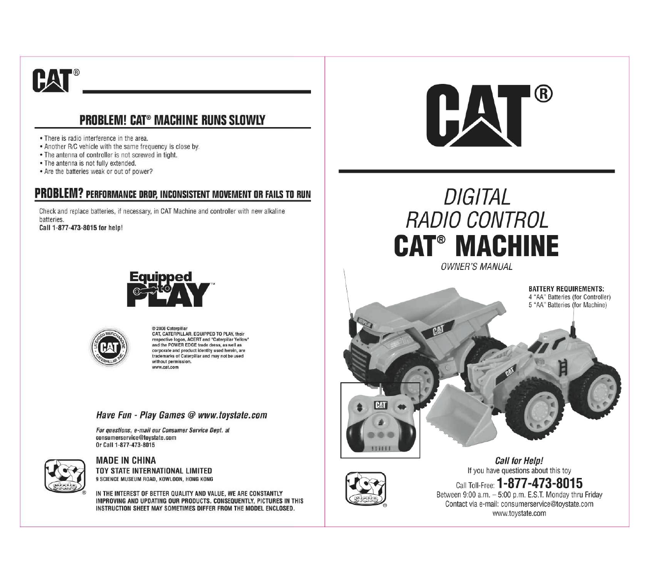 Toy State RCC630 CAT Radio Control Toy Car User Manual Full page fax print