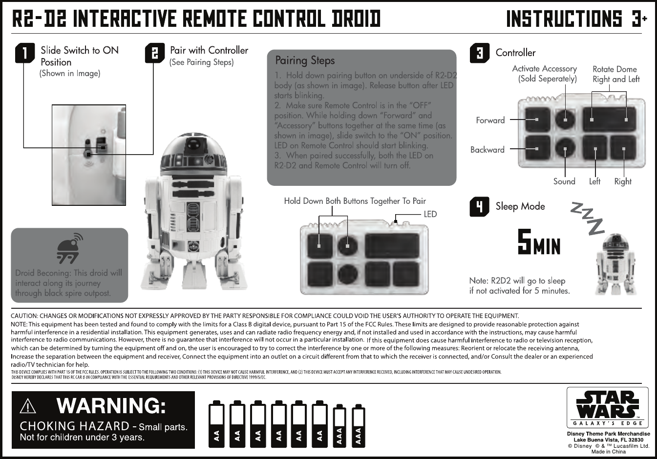 Toy INT121 DS19 REMOTE CONTROL User Manual R2 D2 Instruction Sheet 120718 WT