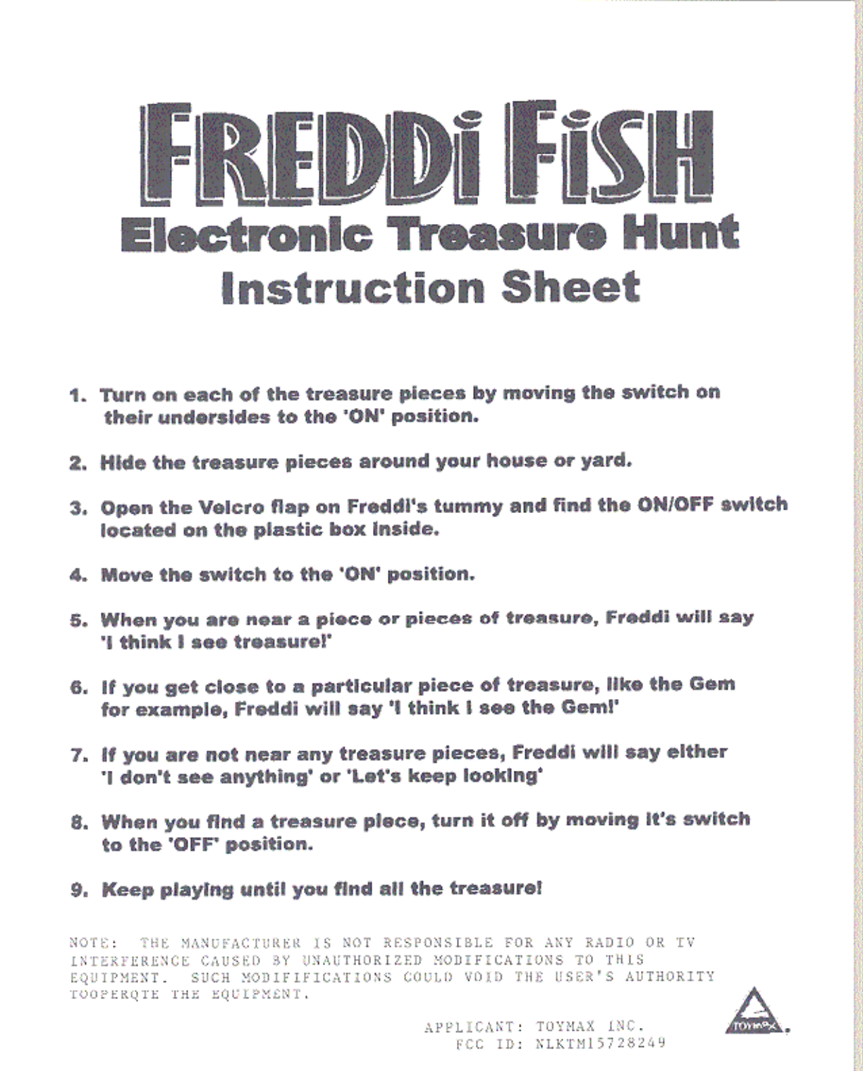 Toymax Inc Treasure Hunt Piece Transmitter Instruction Manual