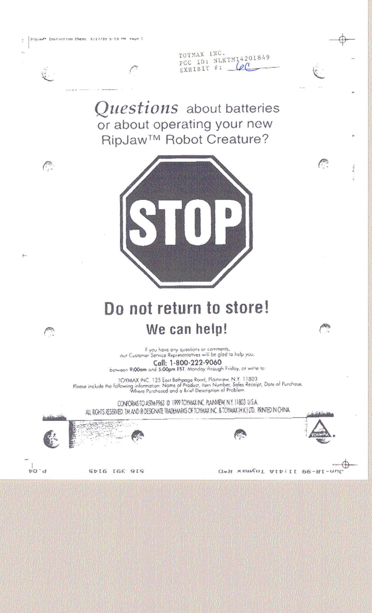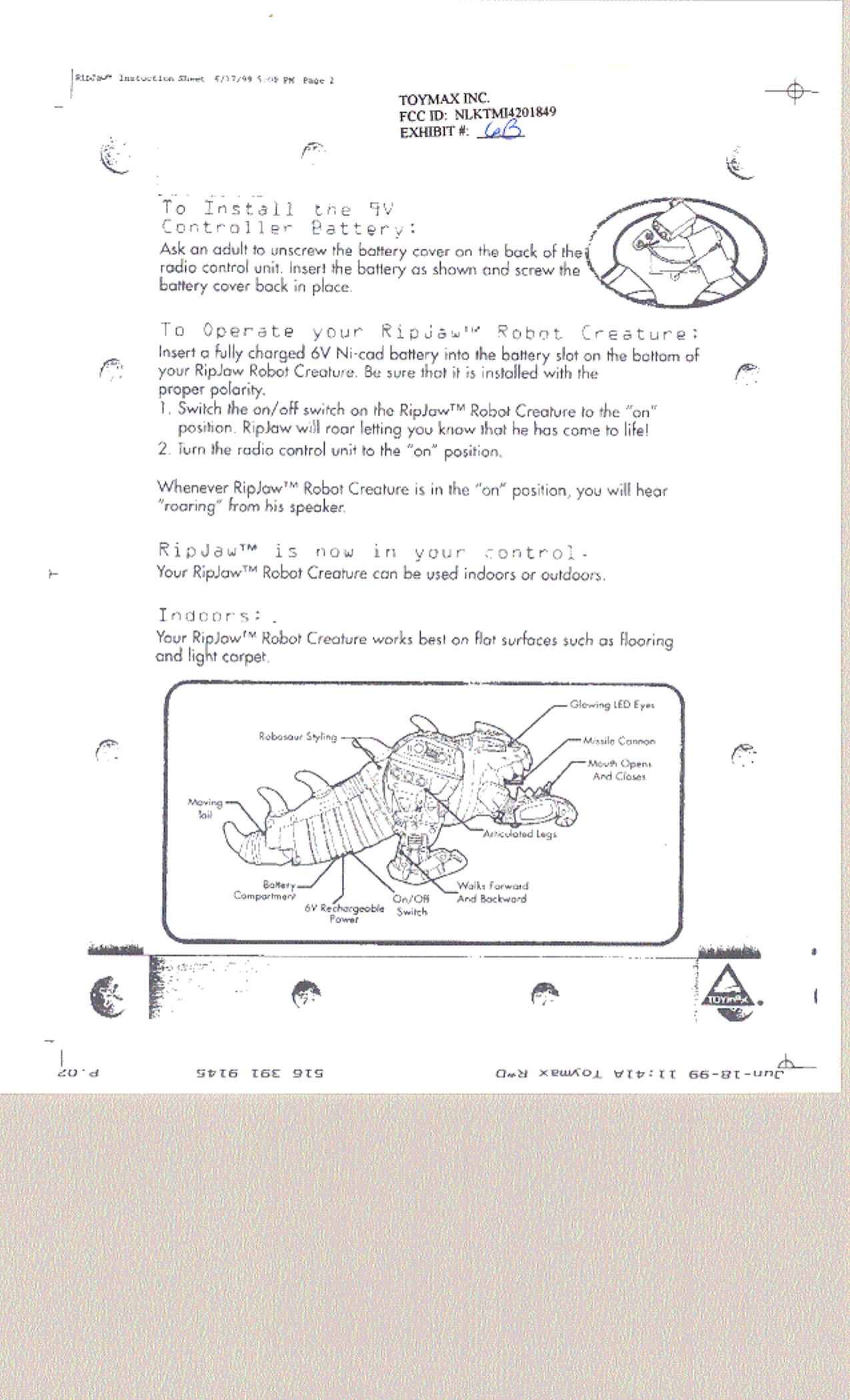 Toymax Inc R/C Toy Transmitter Instruction Manual