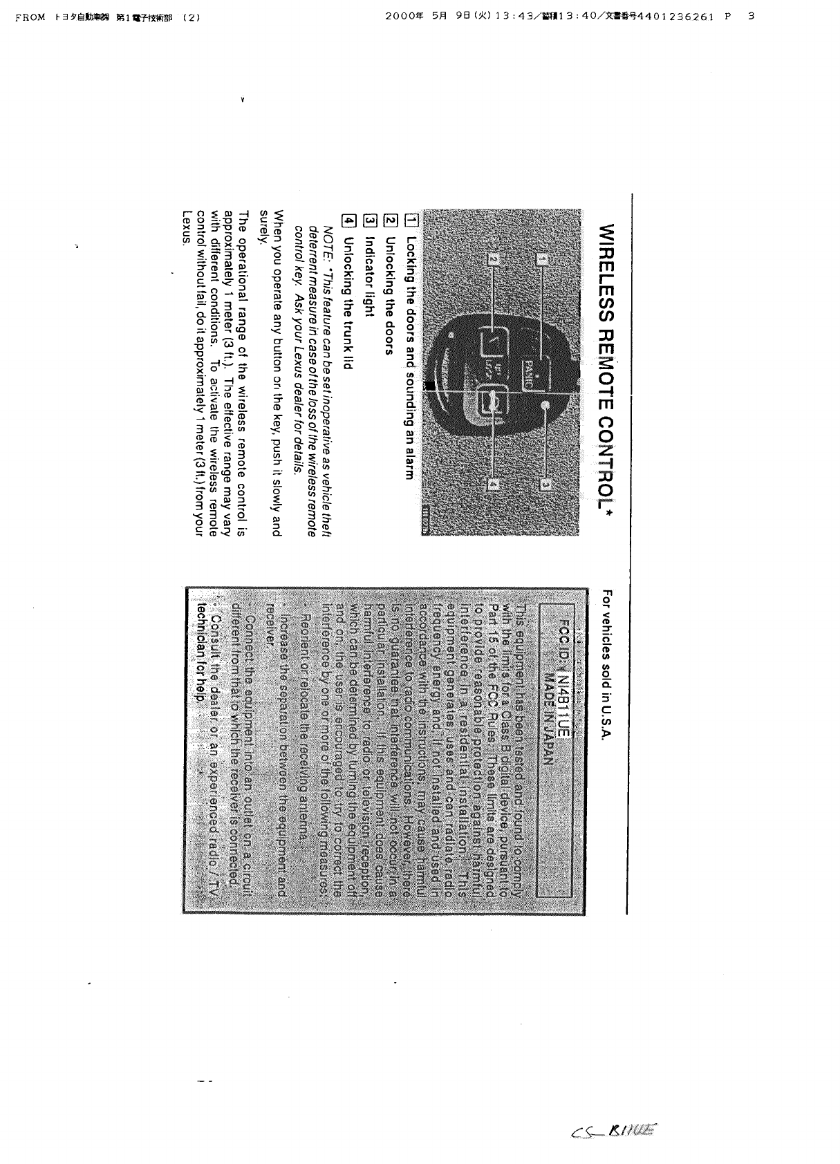 Toyota Motor B11UE Receiver for Wireless Key User Manual compliance statement