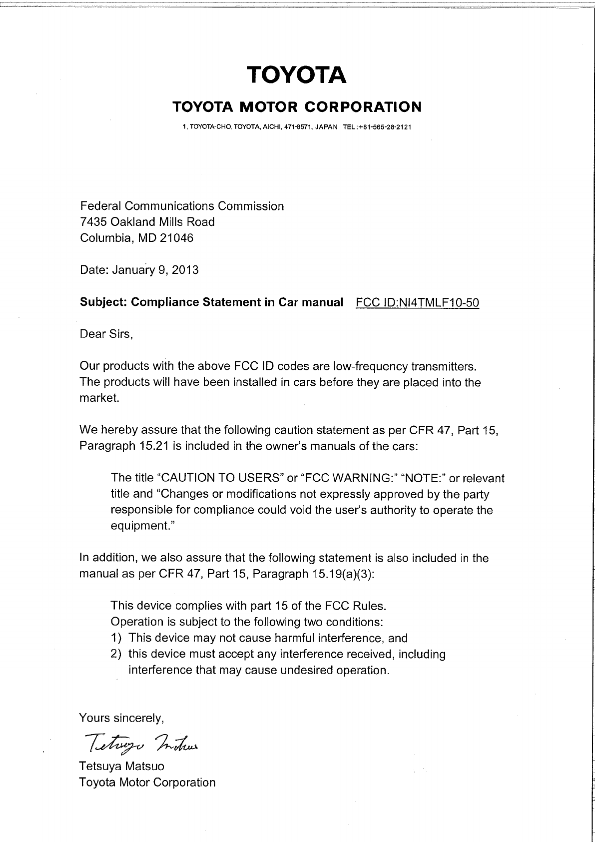 Toyota Motor Corporation Smart LF Oscillator car manuall statements