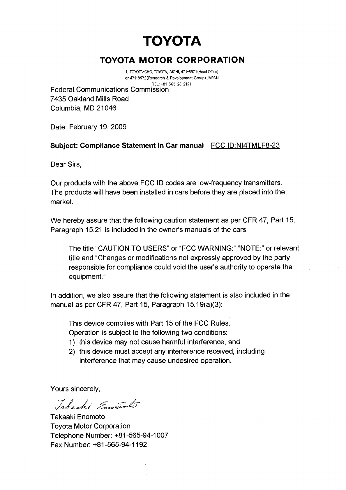 Toyota Motor TMLF8-23 Smart LF Oscillator User Manual