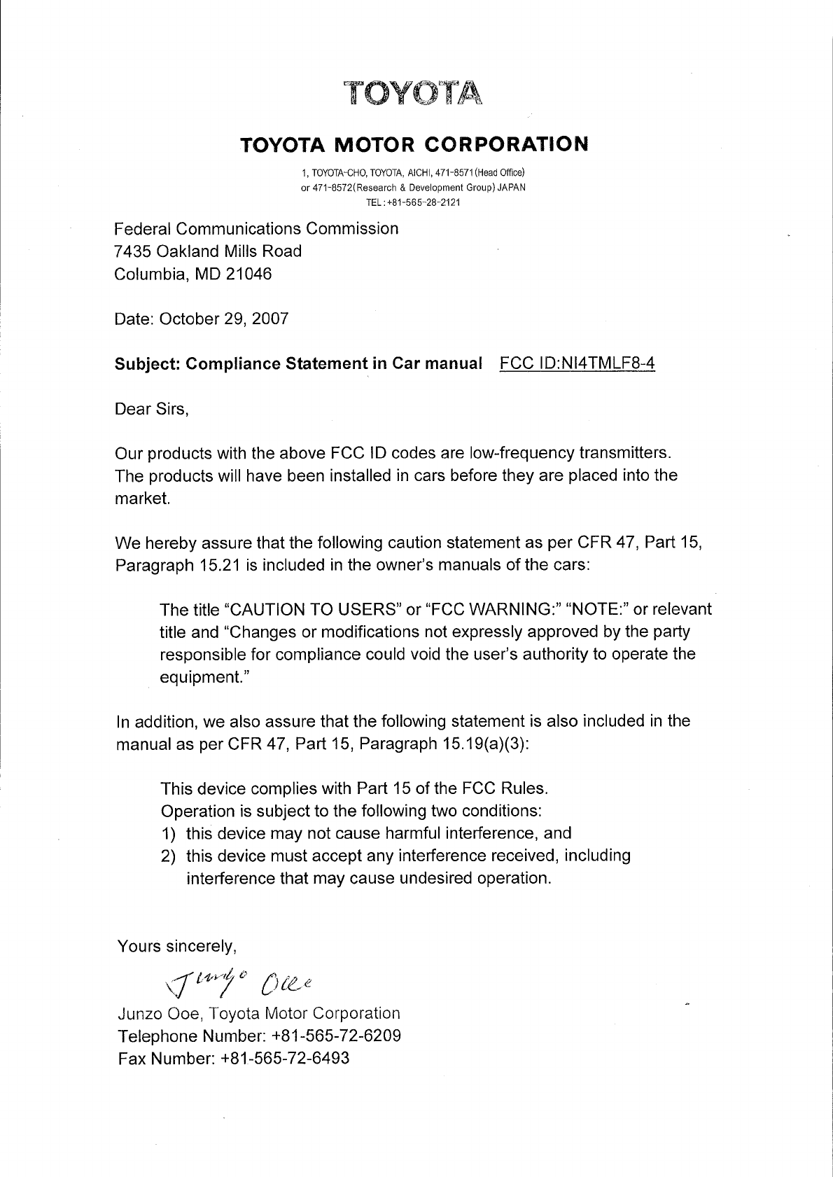 Toyota Motor TMLF8-4 Smart LF Oscillator User Manual