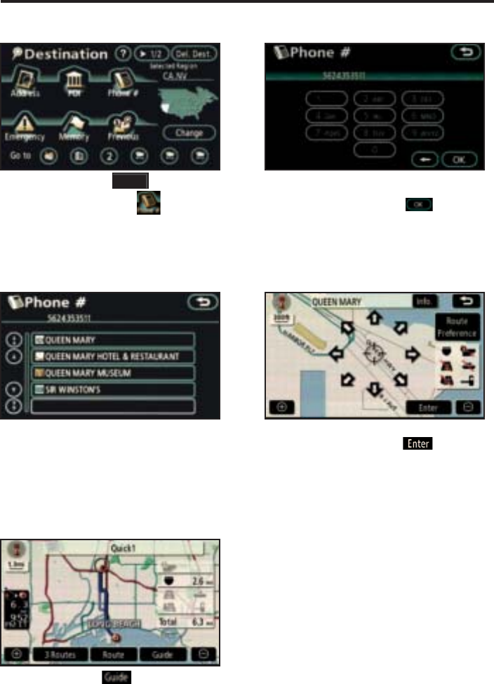 the voice guidance commands. Touch the desired