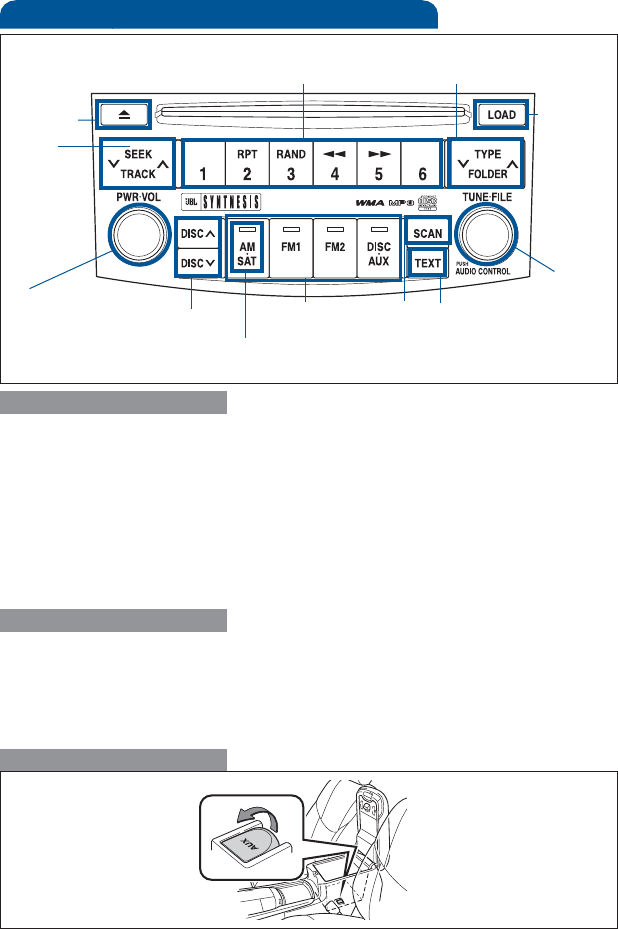 Use to search within the selected audio medium (radio, CD, iPod, etc.).