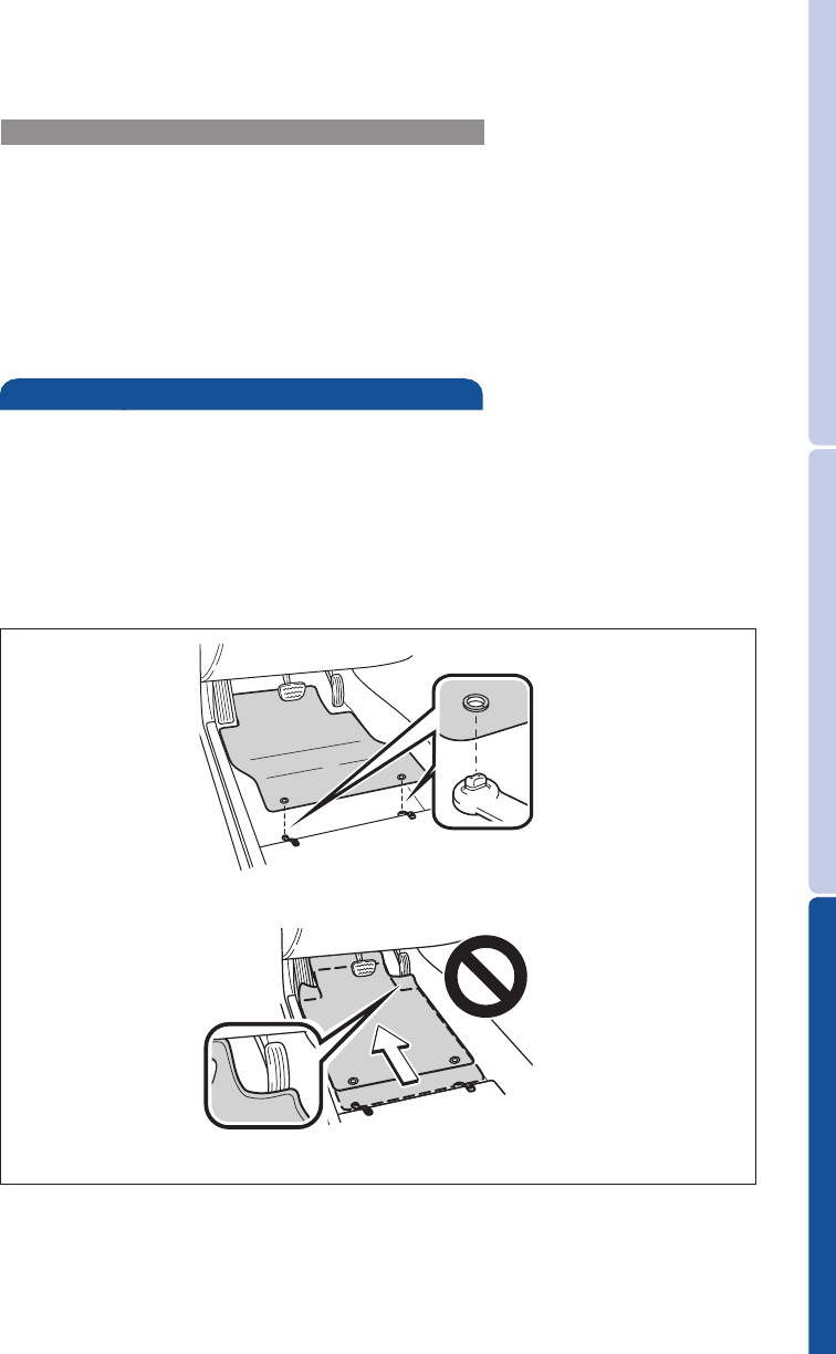 • Use only one floor mat at a time, using the retaining hooks to keep the mat in
