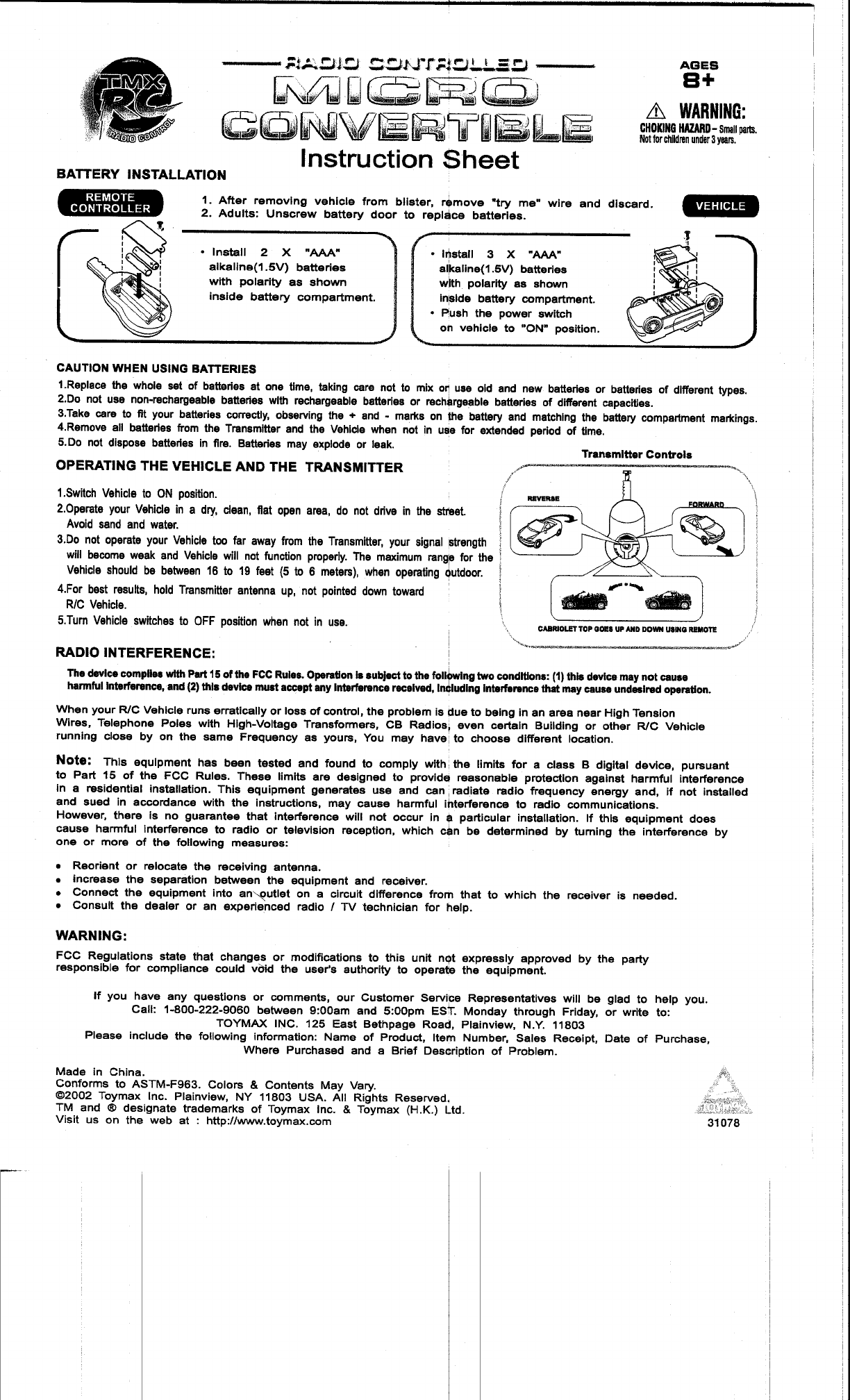 Toys World Electronic Limited Radio Control Car Users Manual