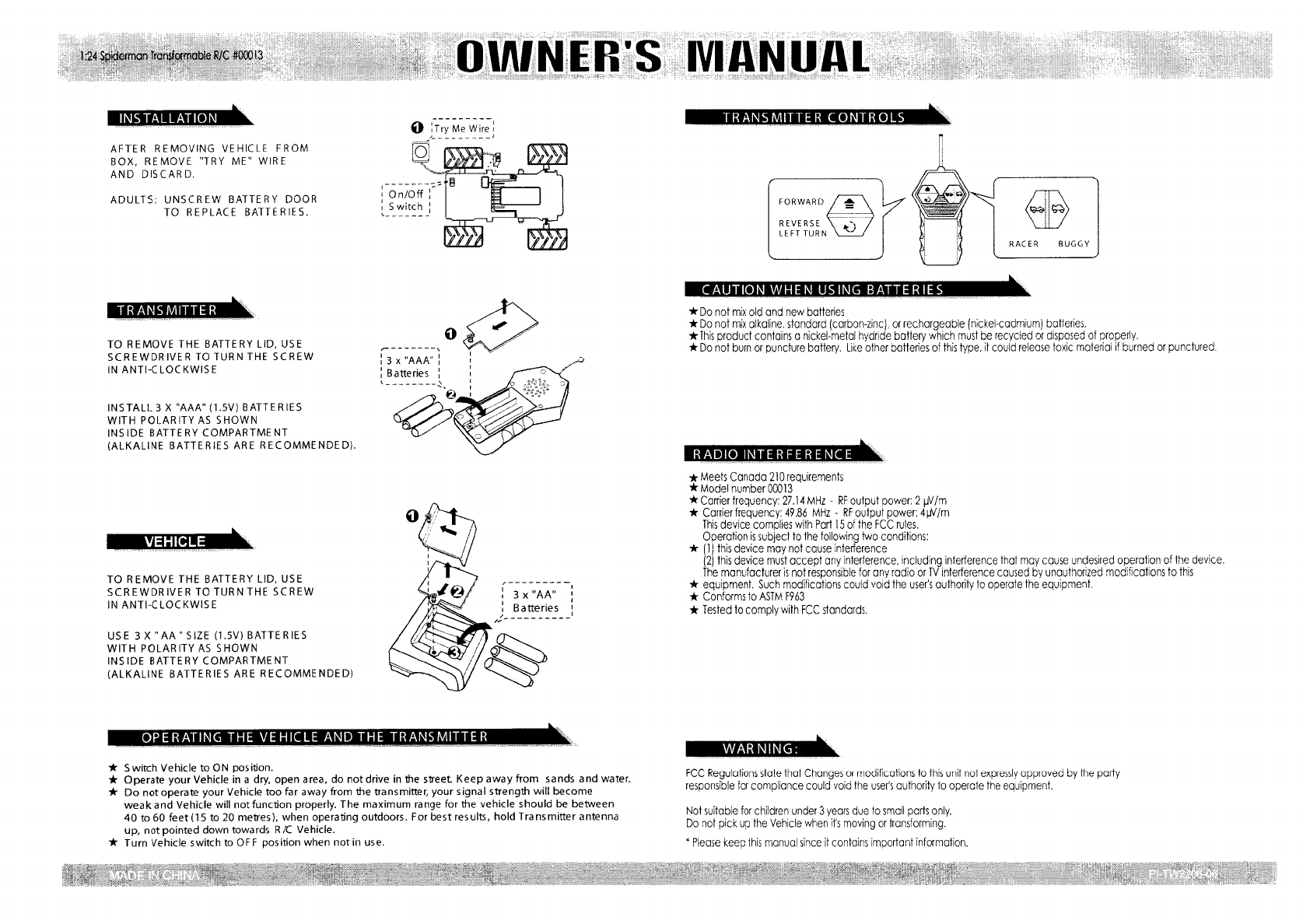 Toys World Electronic TW2206-49-2100 RC Car User Manual