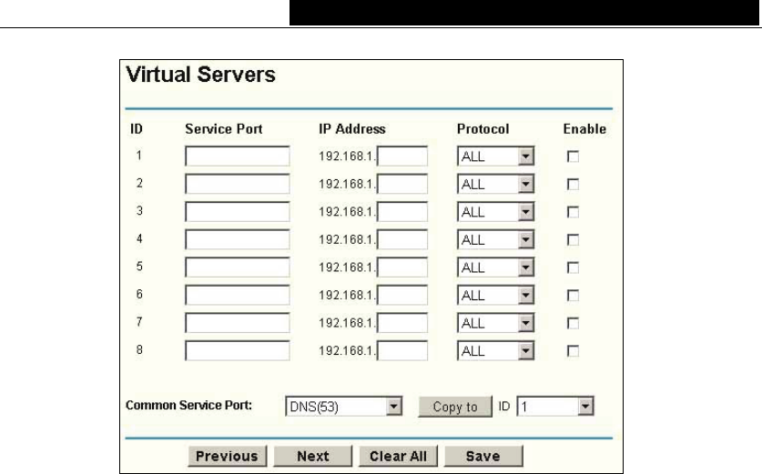 click the "Virtual Servers" submenu. On the "Virtual Server" page, enter “80”