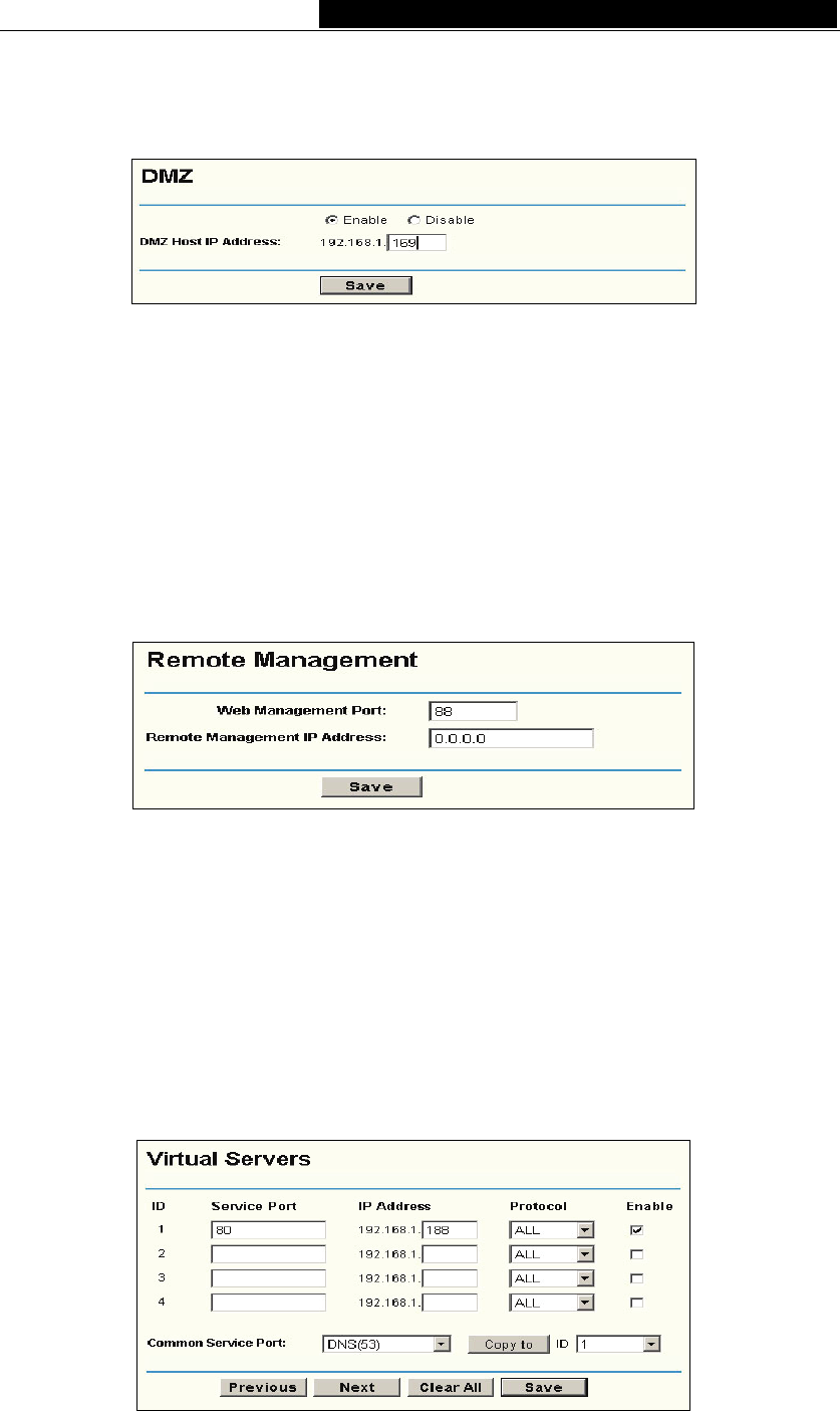 ¾ DMZ (Demilitarized Zone) - A Demilitarized Zone allows one local host to be exposed