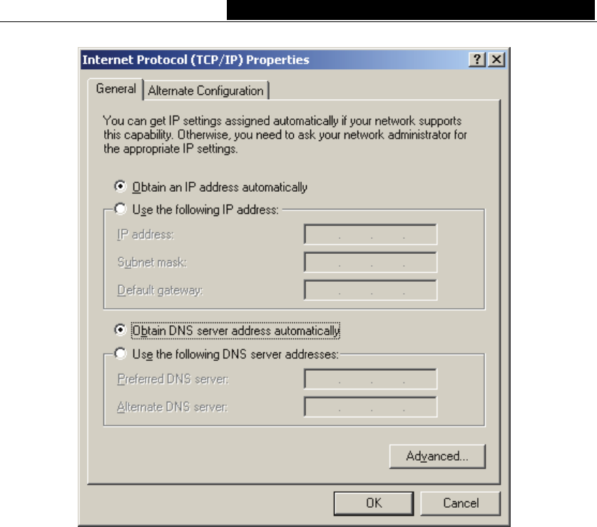 Select Obtain an IP address automatically, Choose Obtain DNS server