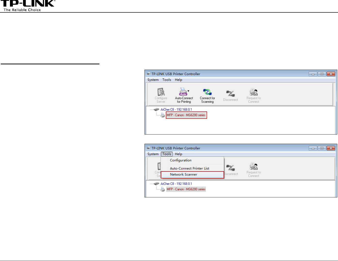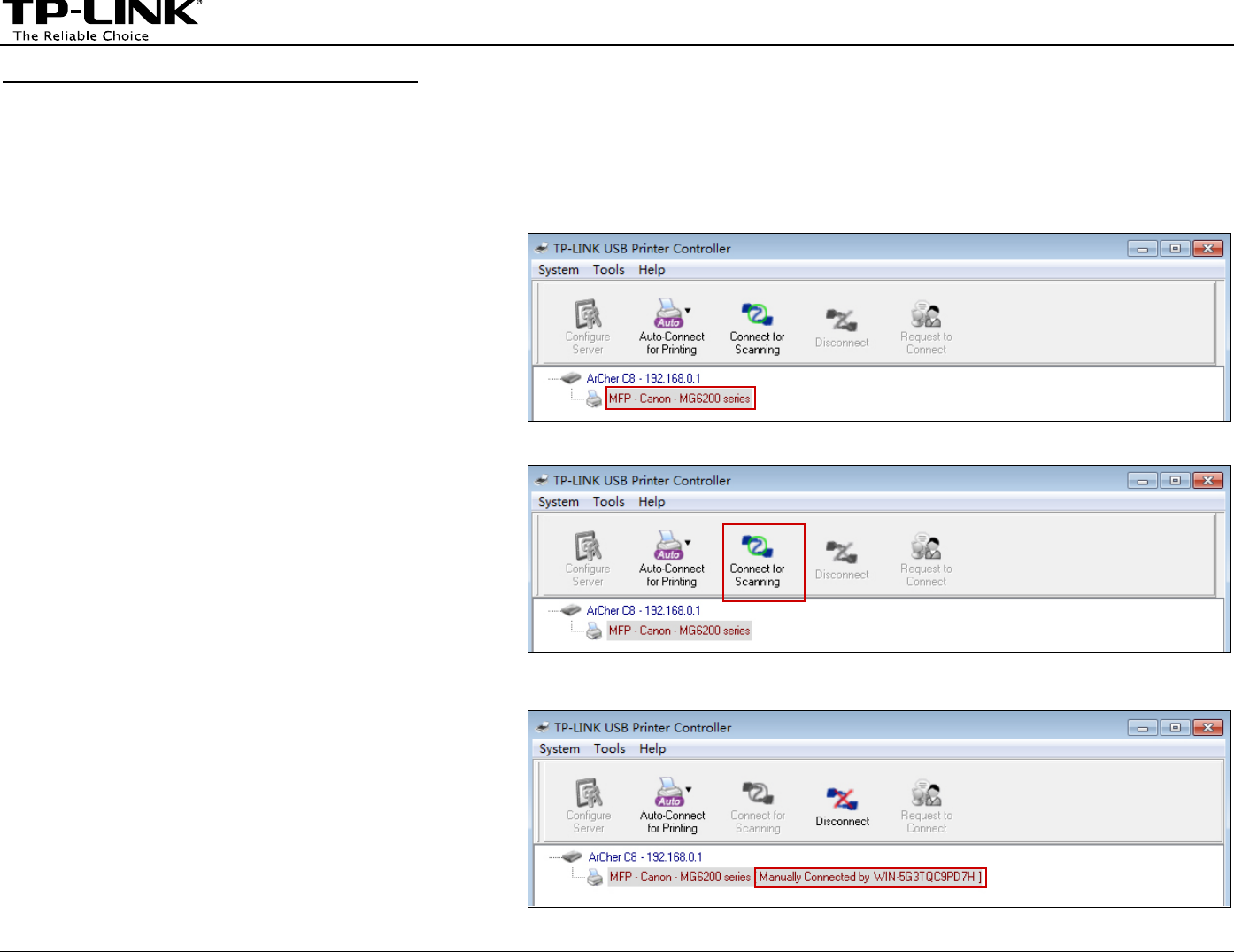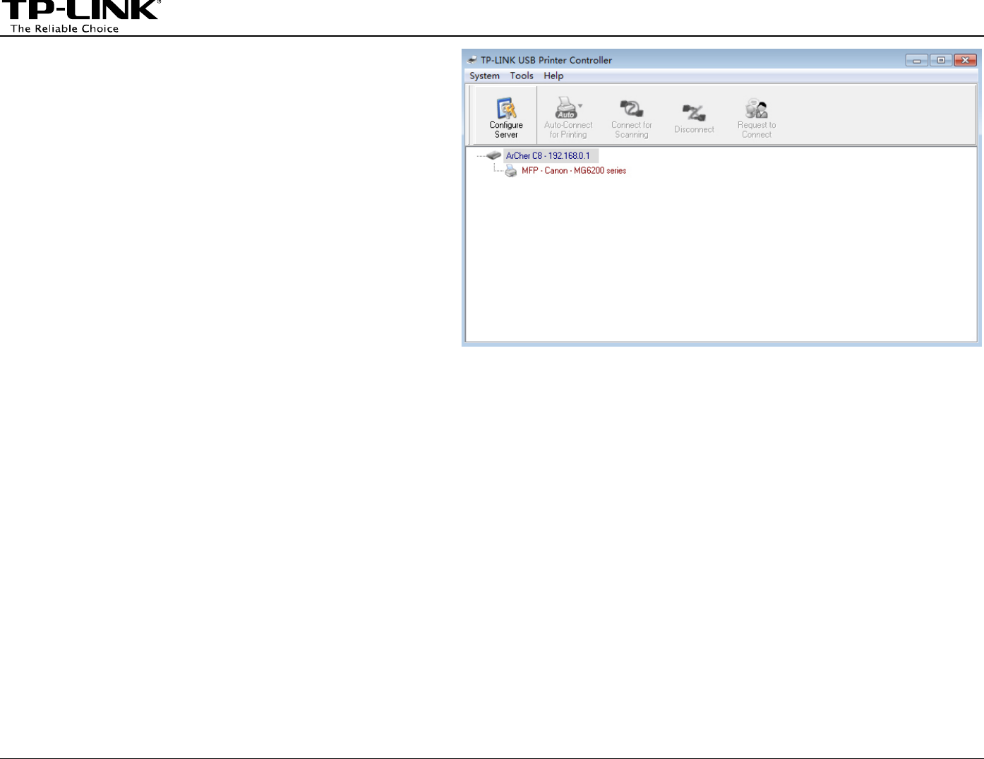 your LAN, each computer that wants to share the print server should also install the TP-LINK USB P