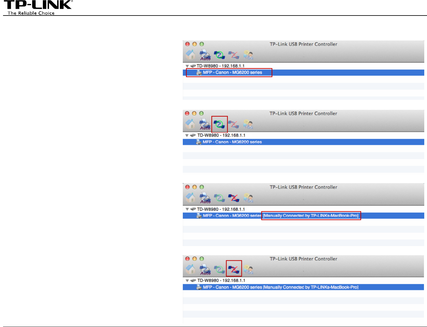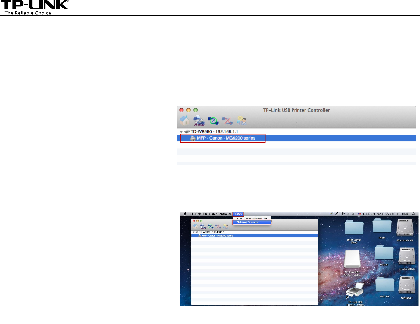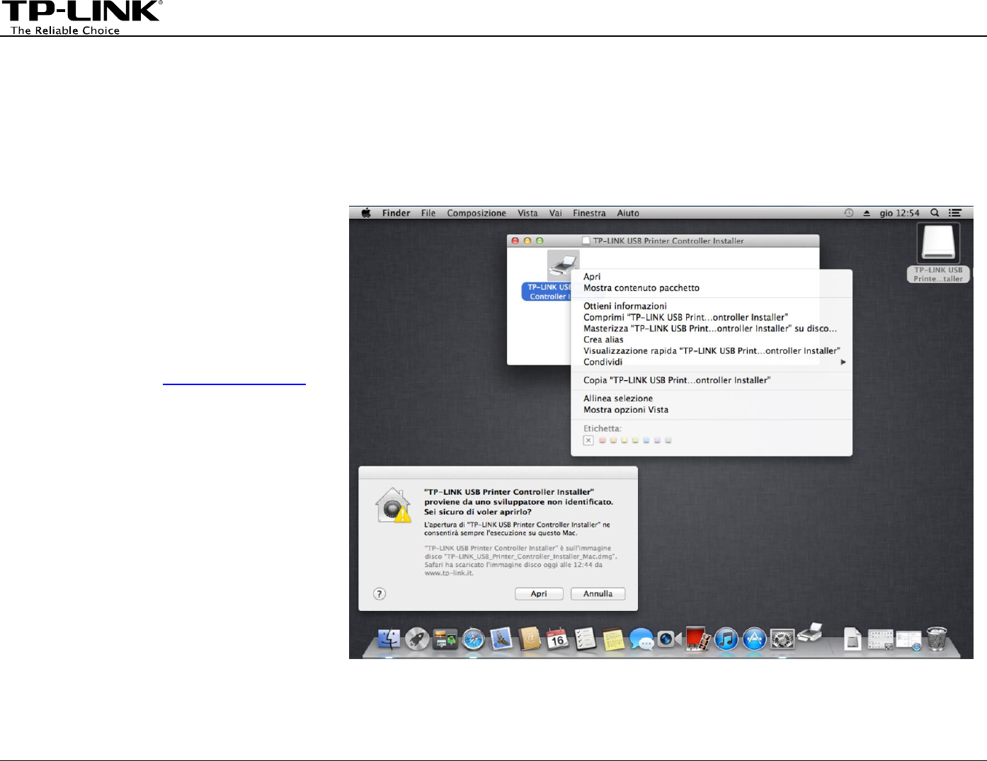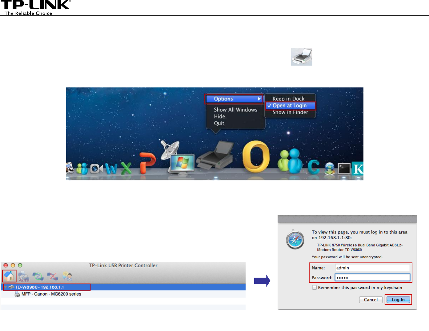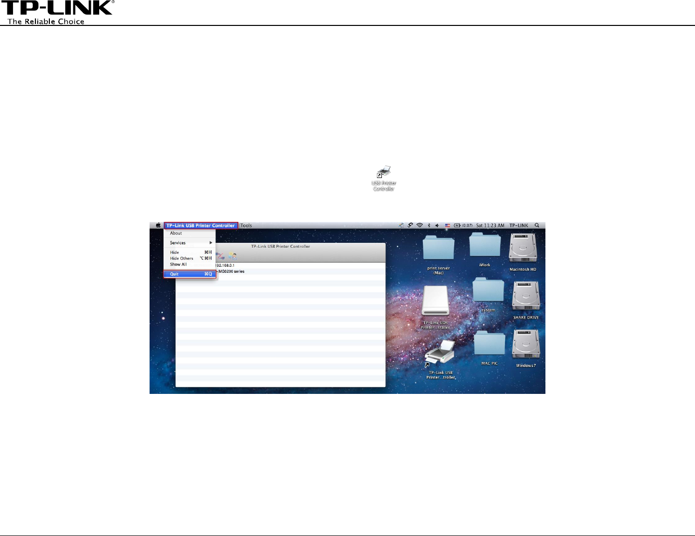 Per eseguire TP-LINK USB Printer Controller automaticamente fare clic lungo sull’icona nella dock fino a vedere il menu
