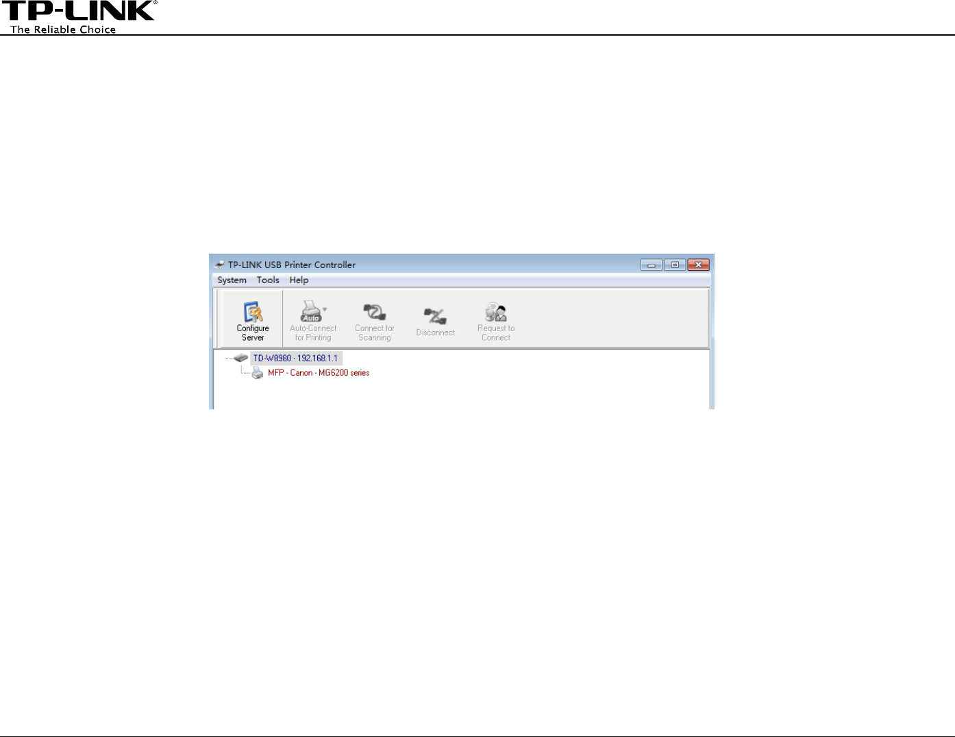 Da TP-LINK USB Printer Controller è possibile fare clic su Configure Server (Configura server) per accedere l’interfaccia web di gestione del