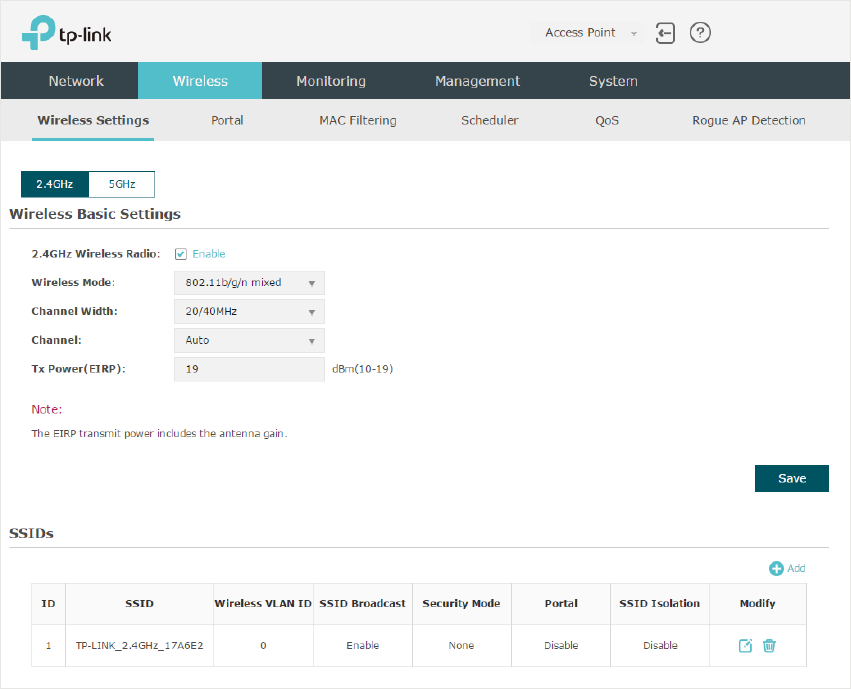 1. Go to the Wireless > Wireless Settings page. If your EAP is a dual-band device, click