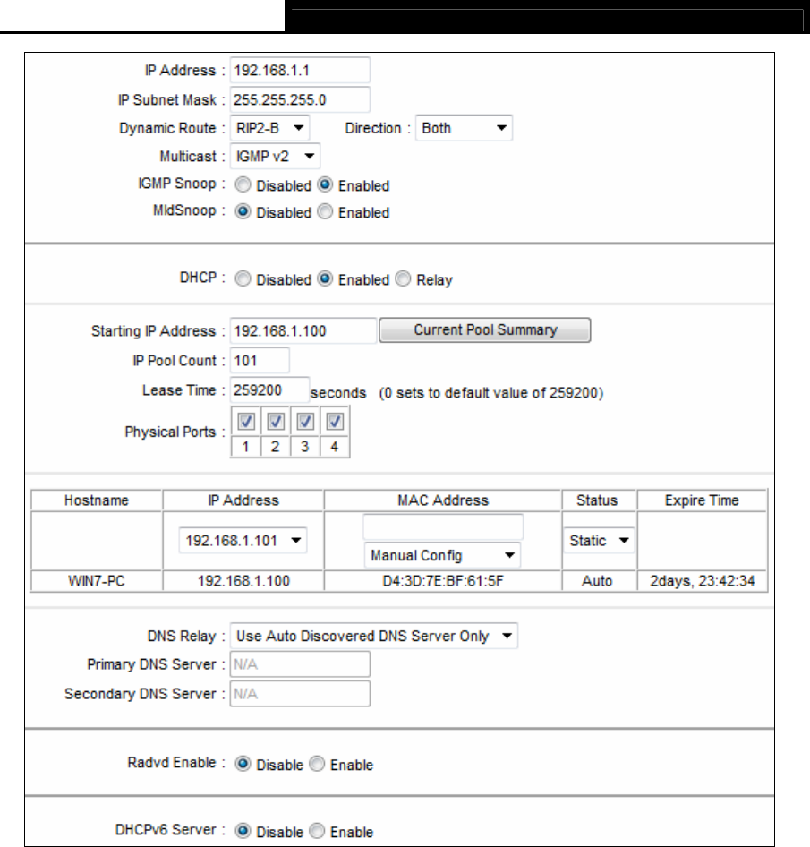 255.255.255.0. These values can be changed as you desire. Here we use all the default values