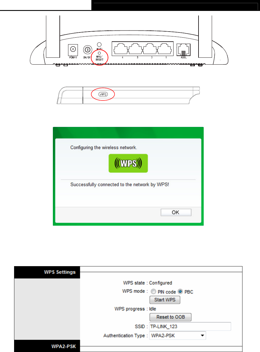 Method one: With the modem router powered on, press and hold down the WPS/RESET button