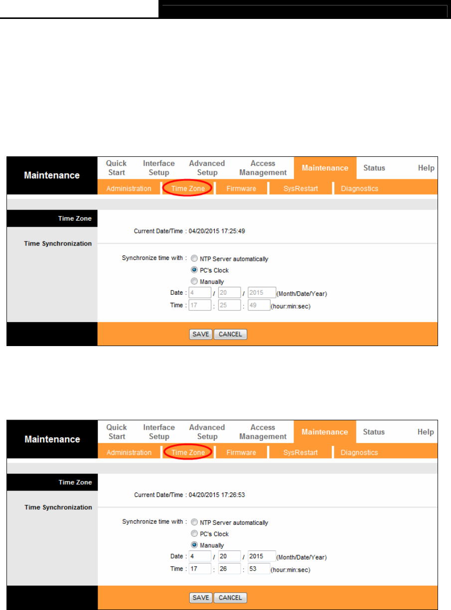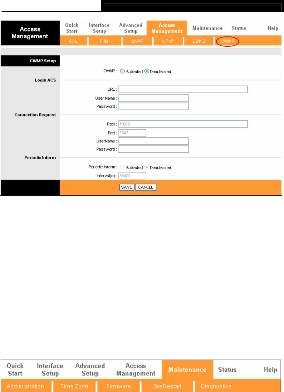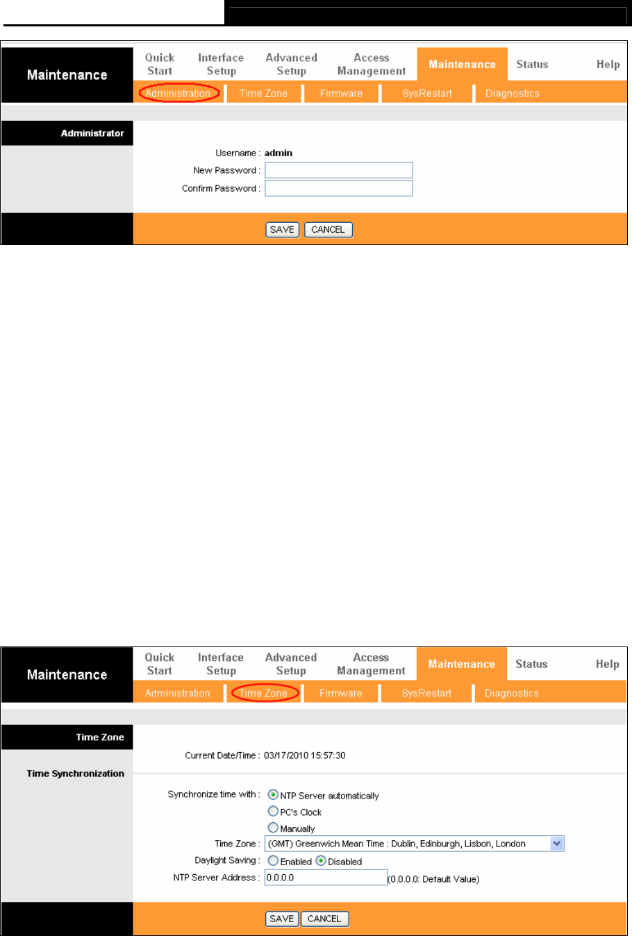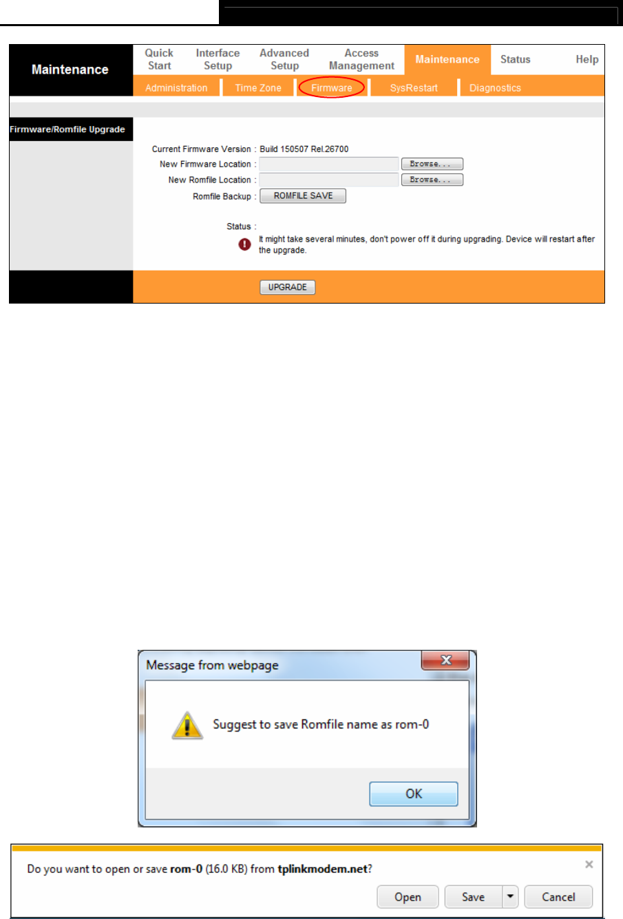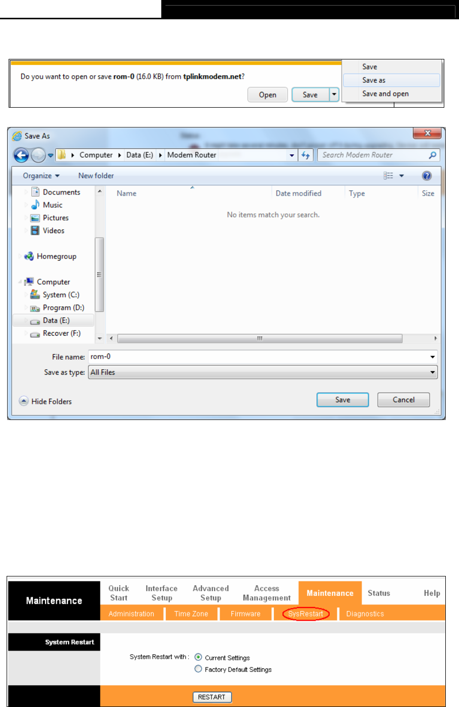 Method two: Restore the default setting from Maintenance→SysRestart of the modem router's