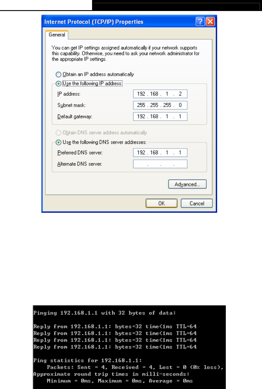 and press Enter. Type ping 192.168.1.1 on the following screen, and then press Enter.