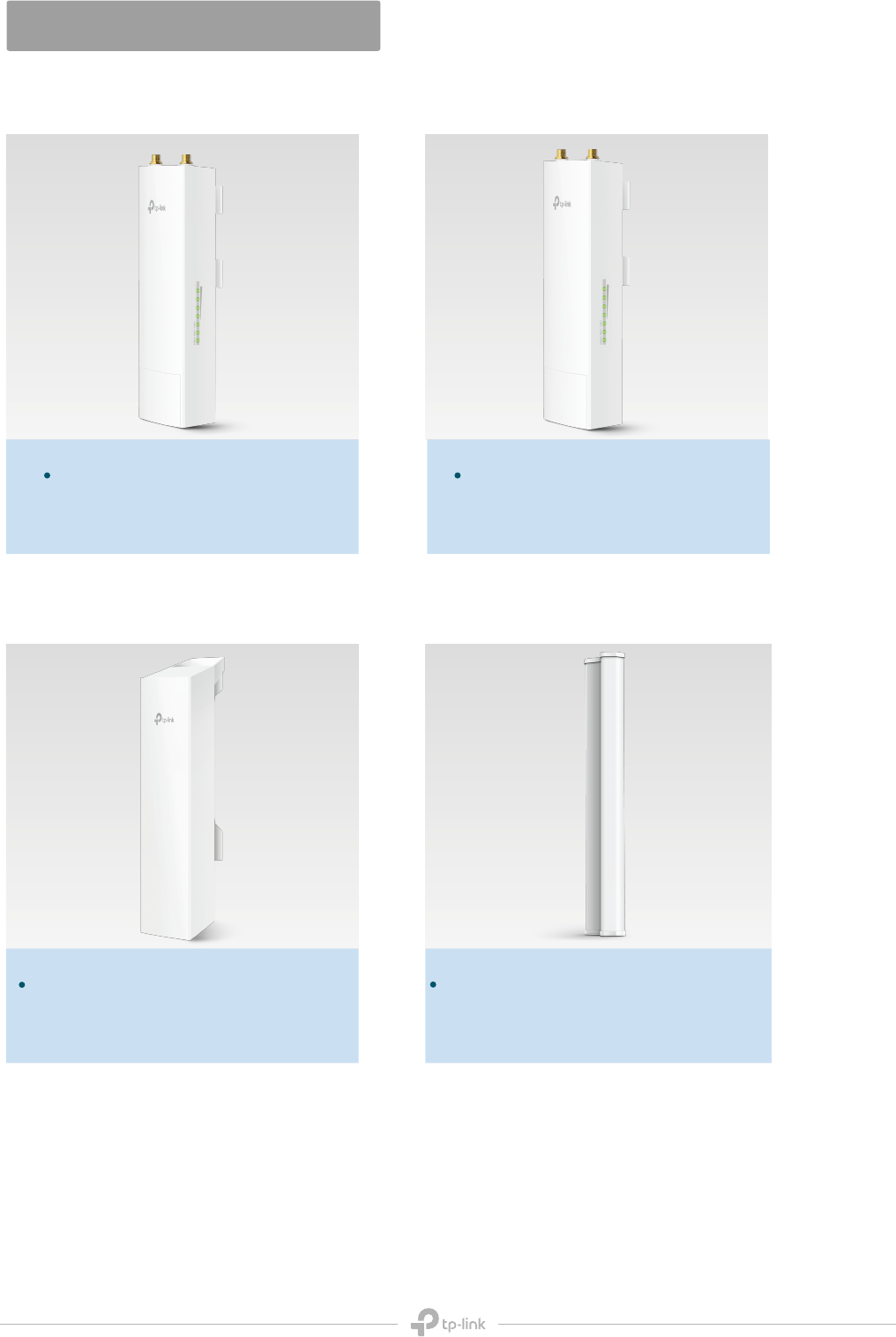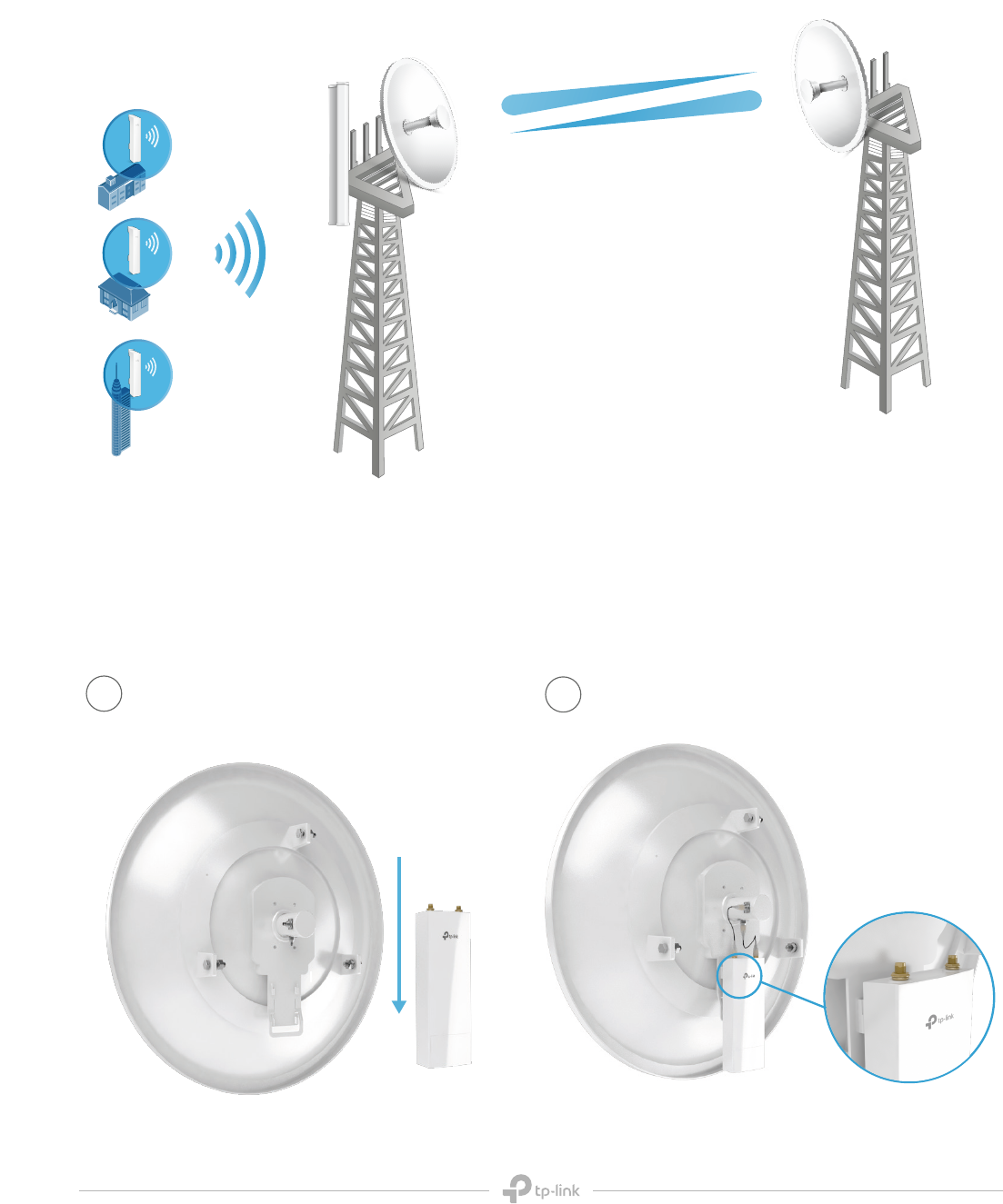 Designed with a built-in mount, TP-LINK dish antenna (TL-ANT5830MD/TL-ANT2424MD) work