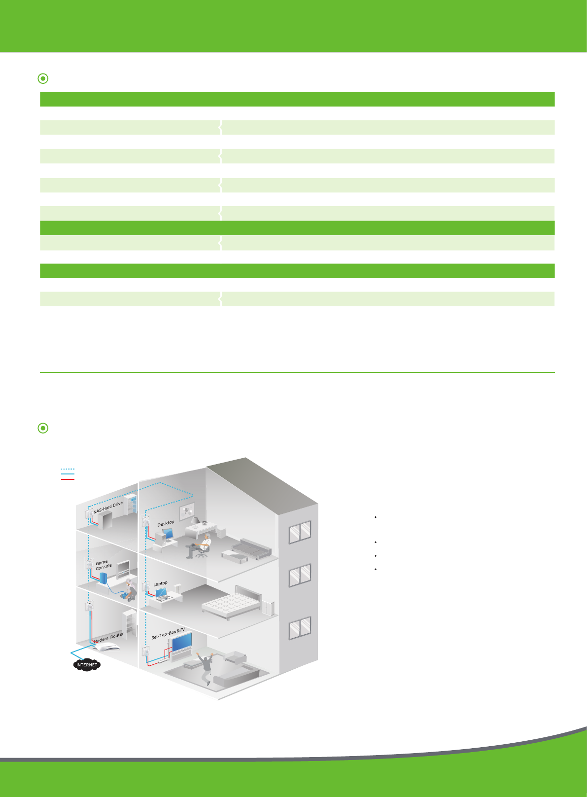 high speed network with no need for new wires or drilling. No conguration is required, simply plug your adapter into your