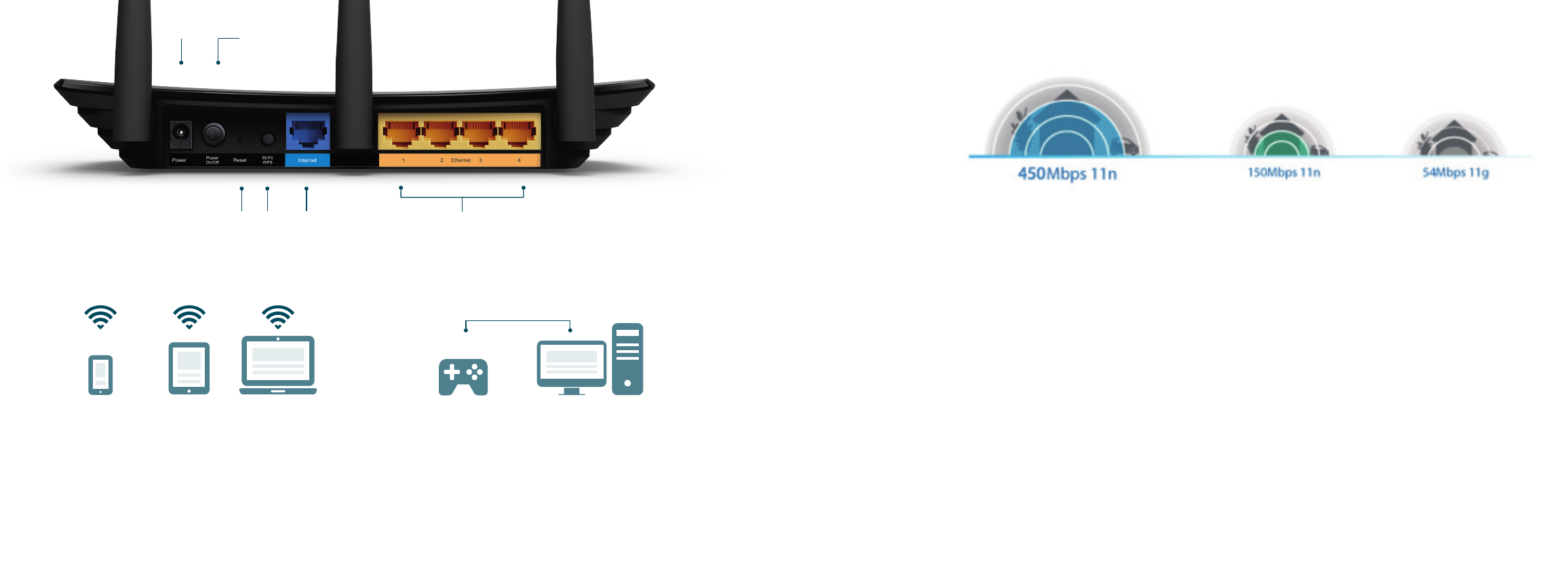 · Wireless N Speed – 450Mbps Wi-Fi speed meets your daily