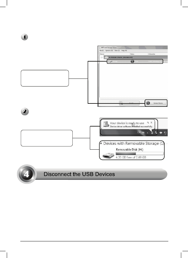 The MFP and Storage Server will auto-detect the USB device connecting to the USB