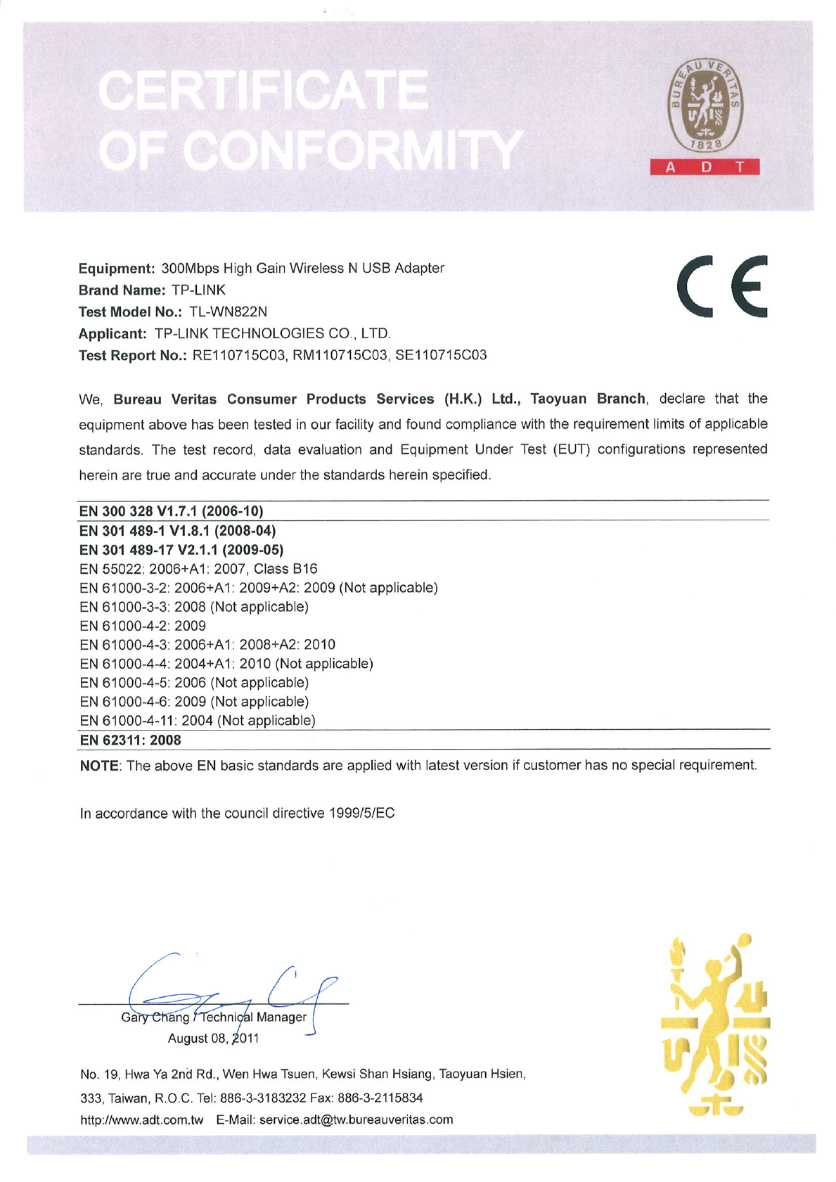 Tp Link Tl Wn822N V2 Certificate Of Conformity
