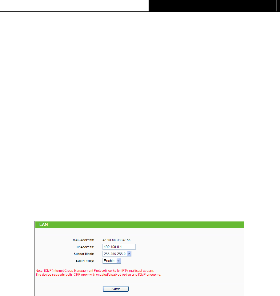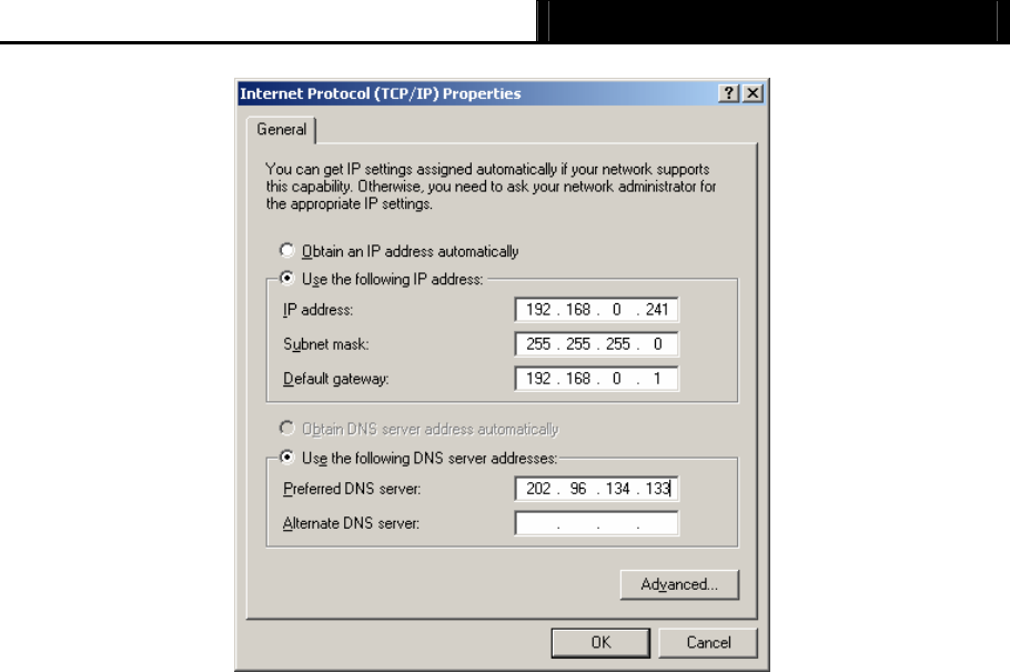 3 Type the Router’s LAN IP address (the default IP is 192.168.0.1) into the Default gateway